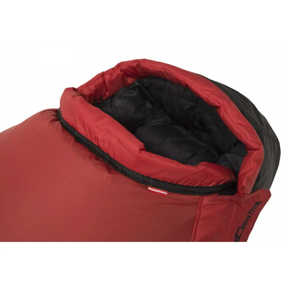Hochwertige europäische Schneegänsedaunen verstaut im bewährten Trapez-Kammer Schnitt, eine Zipper-Wärmeleiste und eine Reißverschlussabdecklasche konservieren die Wärme im Inneren des Schlafsacks. Ein umlaufender Zwei-Wege Reißverschluss sorgt für individuelle Belüftungsmöglichkeiten. Der weitenregulierbare, mit G-Loft gefüllte Wärmekragen und eine konturgeformte Kapuze sorgen für maximalen Komfort an Kopf und Hals. Außerdem bietet der D1200X von Carinthia eine Innentasche sowie vorgefertigte Schlaufen für Carinthia Grizzly und Silkliner.