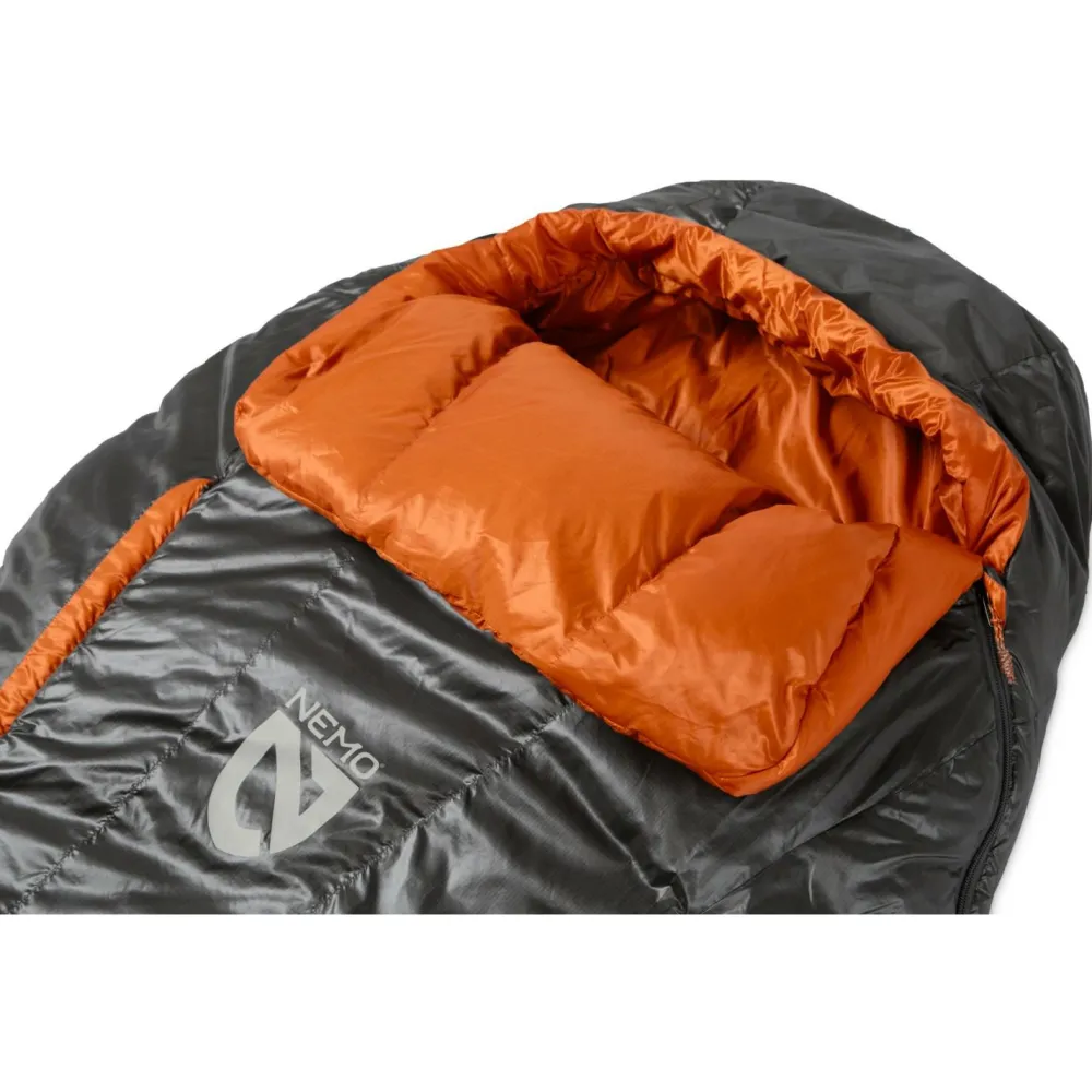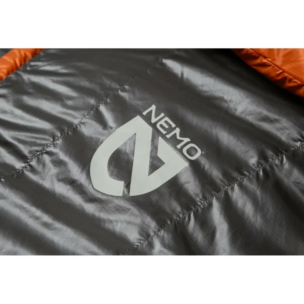 Der leichte Schlafsack wird mit einem praktischen Packsack geliefert, in dem sich er sich platzsparend verstauen und transportieren lässt. Mit Ventilationsöffnungen auf der Vorderseite, einem integrierten Wärmekragen und einer warm isolierten Kapuze ergänzt Nemo den funktionellen Schlafsack.