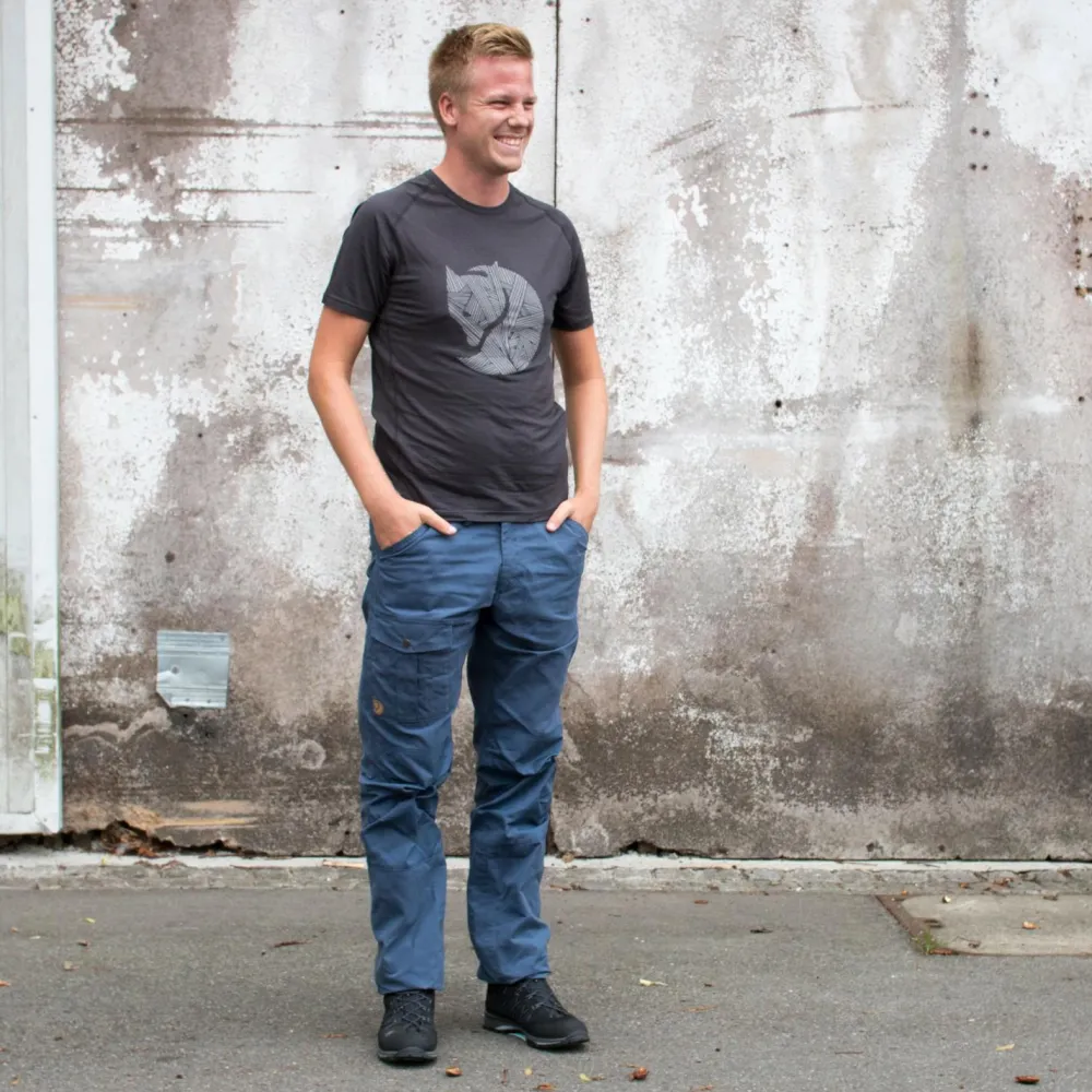 Eher leichte Hose aus G-1000 für den täglichen Outdoor Einsatz beim Sport und sonstigen Unternehmungen.Die Fjällräven Nils Trousers vereint die funktionellen Eigenschaften von G-1000 mit einem schlichten, alltagstauglichen Design und einer modischen Erscheinung durch eher schlanken Schnitt. Das Silent Material weist eine gebürstete Oberfläche auf und ist damit besonders weich im Griff. Beanspruchte Stellen an Knien und Gesäß sind aus klassischem G-1000 gefertigt und nochmals abriebfester. Zur reduzierten Ausstattung gehören drei Taschen, Gürtelschlaufen und Rohlänge zum flexiblen Selberkürzen auf die individuelle Beinlänge. Mehr braucht die solide und verlässliche Nils Trousers für den täglichen Gebrauch im Großstadtdschungel oder beim Ausflug auf den Waldspielplatz mit den Kleinen nicht!