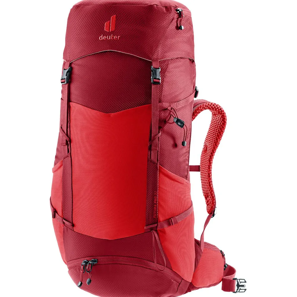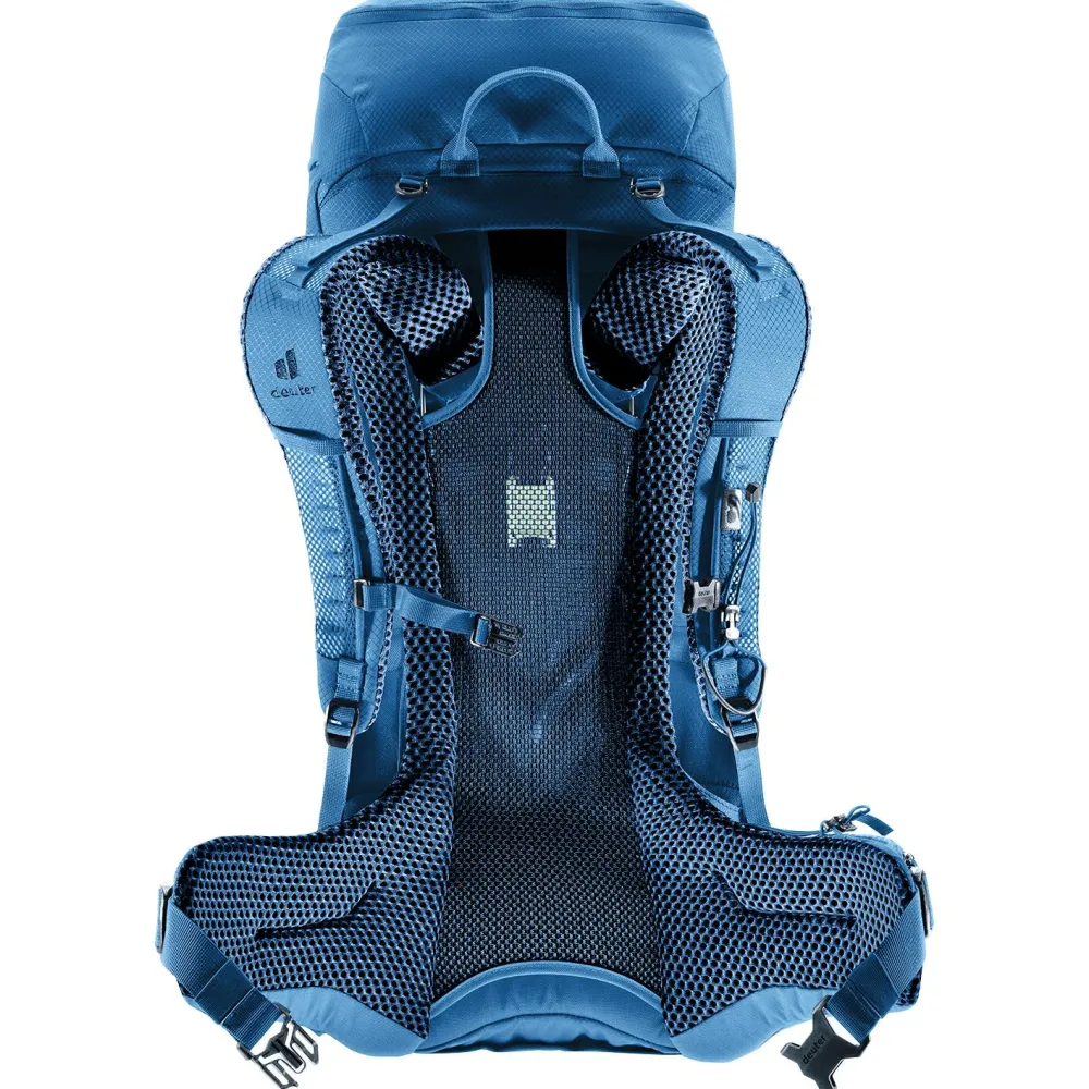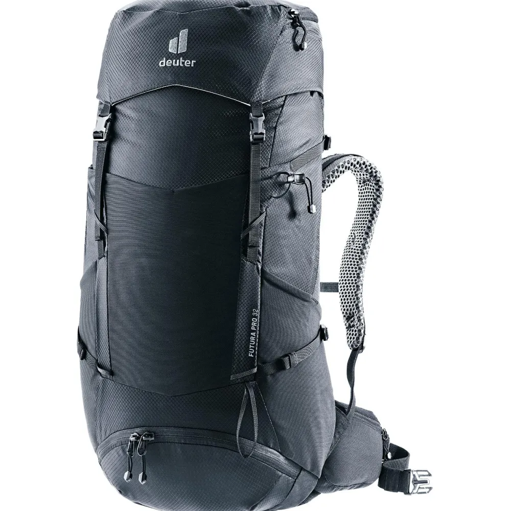 Der Futura Pro 32 Wanderrucksack von Deuter kommt mit gepolsterten und belüfteten Schulter- und Hüftträgern daher und bietet auf anstrengenden Wanderungen einen hervorragenden Tragekomfort. Wenn es zu anstrengenden und schweißtreibenden Anstiegen kommt, kann die entstehende Feuchtigkeit direkt verdunsten und Du profitierst von einer dauerhaften Luftzirkulation am Rücken. Im Innern kannst Du mit einem aufklappbaren Zwischenboden eine Unterteilung des Stauraums vornehmen.