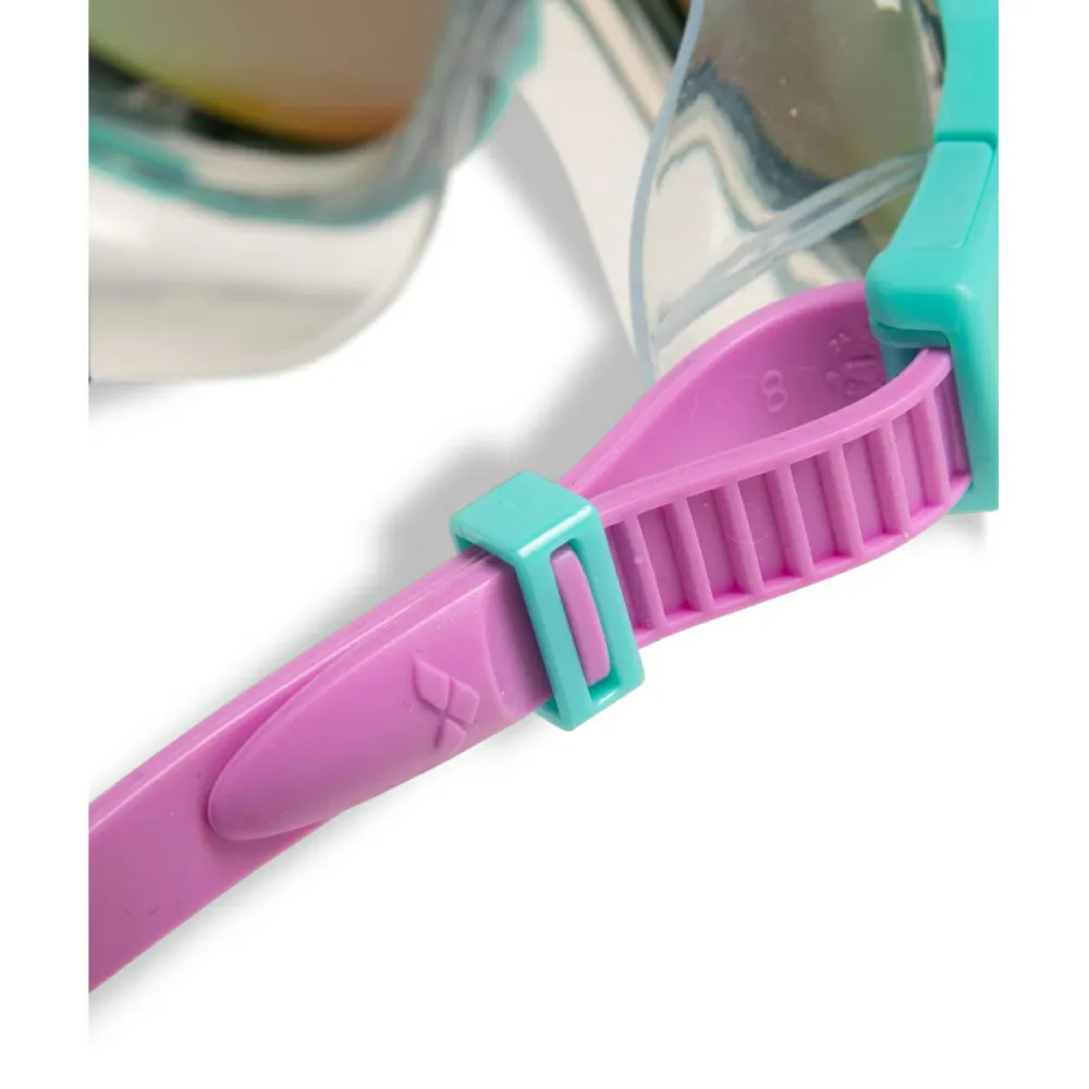 Die Arena Kid’s The One Mask Mirror Schwimmbrille ist ein kleines Wunderwerk der Materialqualität. Die Gläser und der Rahmen bestehen aus robustem Polycarbonat, das für seine hohe Schlagfestigkeit bekannt ist. Egal, wie wild das Spiel im Wasser wird, diese Brille hält stand und bleibt dabei in Topform. Das Silikon-Kopfband passt sich flexibel an verschiedene Kopfgrößen an und sorgt dafür, dass die Brille auch bei den wildesten Wasserschlachten nicht verrutscht. So können die Kleinen unbeschwert planschen und tauchen, ohne ständig die Brille zurechtrücken zu müssen.
