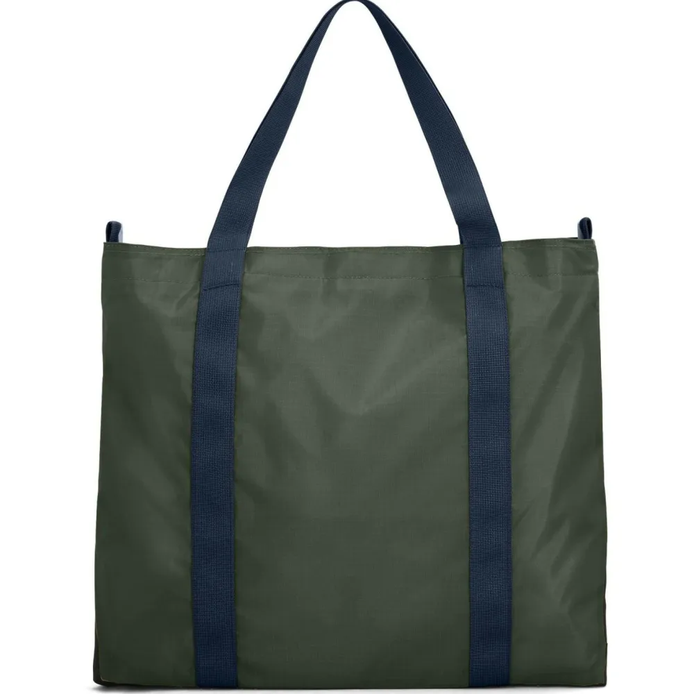 Die Materialien – 200D recyceltes Nylon-Ripstop und 400D recyceltes Nylon – sorgen für Leichtigkeit und Stabilität zugleich. PFC-frei imprägniert, bluesign-zertifiziert und Fair Trade gefertigt – mit dieser Tote trägst Du nicht nur Deine Sachen, sondern auch Verantwortung.