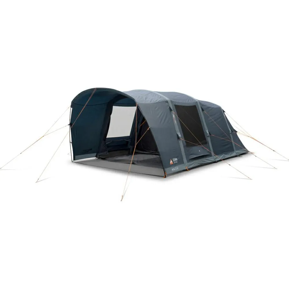 Das vormontierte Vordach des Sierra 500 schafft zusätzlichen Wohnraum, nutzbar z.B. als Essplatz mit echtem Outdoor-Feeling bei Regenwetter. Das Sentinel Fabric-Gewebe ist stark und strapazierfähig, und bietet mit einer Wassersäule von bis zu 4.000 mm guten Schutz vor Feuchtigkeit; von unten verhindert die wasserdichte PE-Bodenplane das Eindringen von Feuchtigkeit. Die AirBeam-Technologie sorgt für eine leichte und schnell aufzubauende Struktur, die dafür nötige Pumpe mit Druckanzeige ist im Lieferumfang enthalten. Das SkyTrack II-System ermöglicht es Dir, Beleuchtung oder Stautaschen flexibel anzubringen. Das TBSII Tension Band System sorgt für zusätzliche Stabilität bei starkem und wechselndem Wind. Mit der Easy Pack Carry Bag lässt sich das Zelt schnell und einfach verstauen und transportieren.