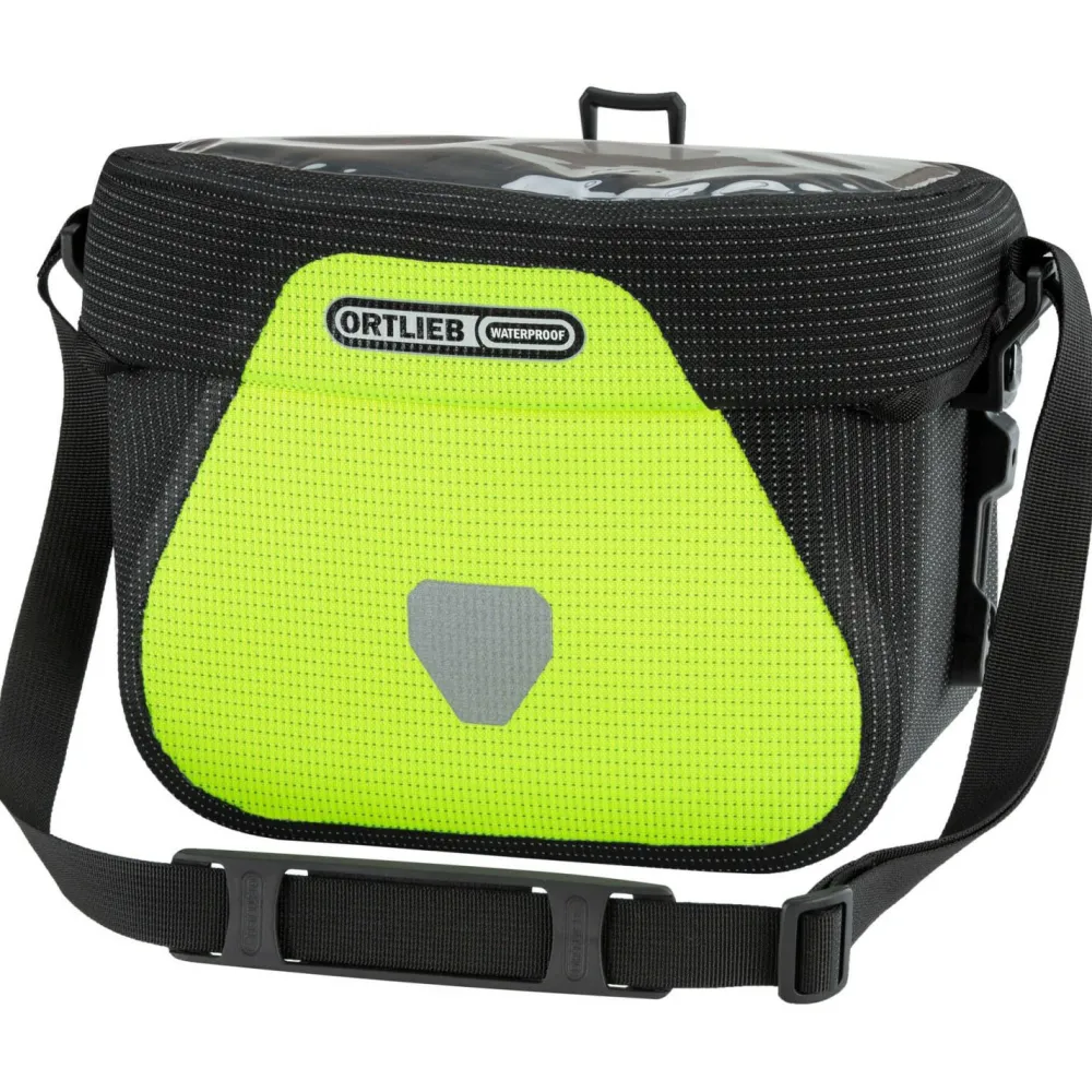High Visibility heißt bei Ortlieb: Radfahren mit einem Höchstmaß an Sicherheit. Das wasserdichte PU-beschichtete Cordura-Gewebe der Ultimate High-Vis Lenkertasche ist komplett mit einem leuchtstarken Reflexgarn durchzogen. Im Scheinwerferlicht wird die gesamte Tasche zu einem unübersehbaren Reflektor.