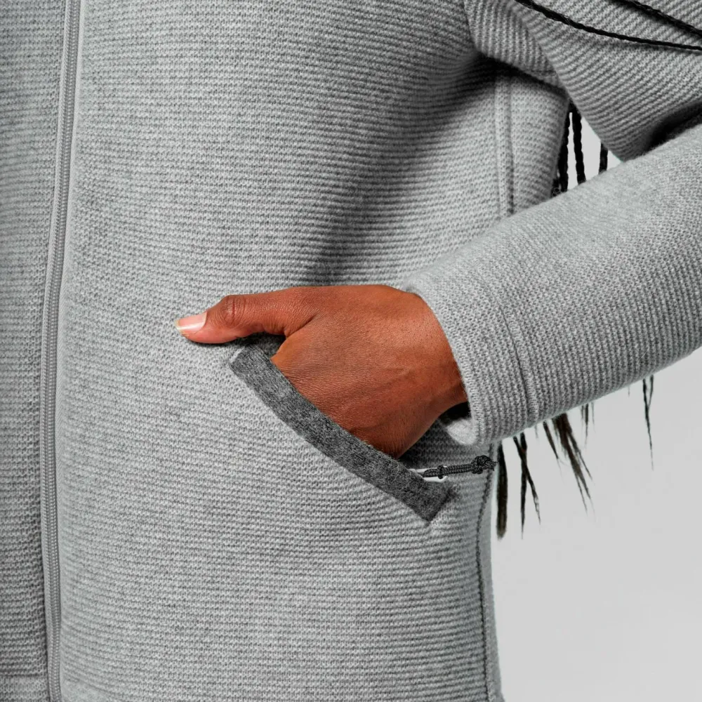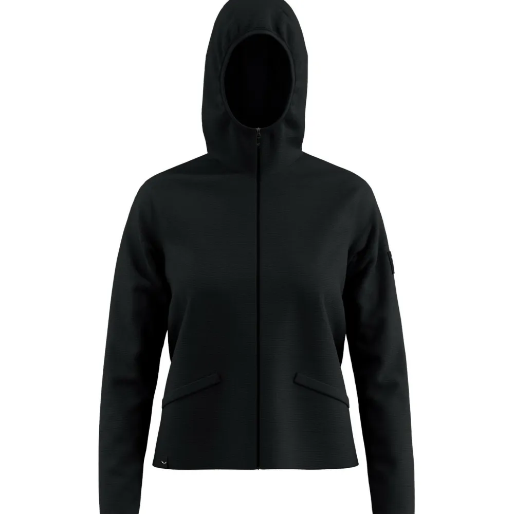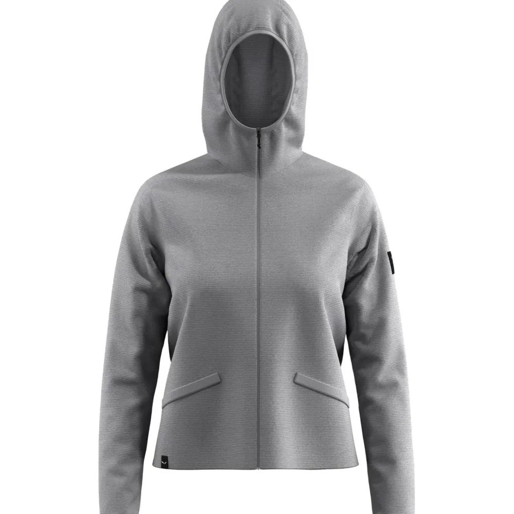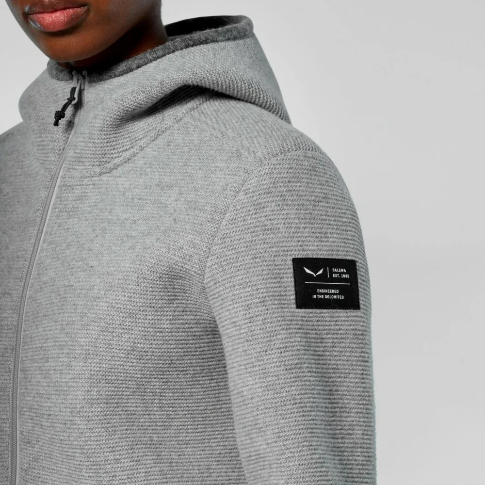 Die Women’s Fanes Sarner Jacket Freizeitjacke von Salewa sieht schon auf den ersten Blick nach einem gemütlichen Begleiter für den Alltag aus. Das dicht gestrickte Material mit einem hohen Wollanteil schmiegt sich angenehm an und lädt zum Kuscheln ein. Auch der empfindliche Kopfbereich kann mit der weichen Kapuze vor niedrigen Temperaturen geschützt werden.