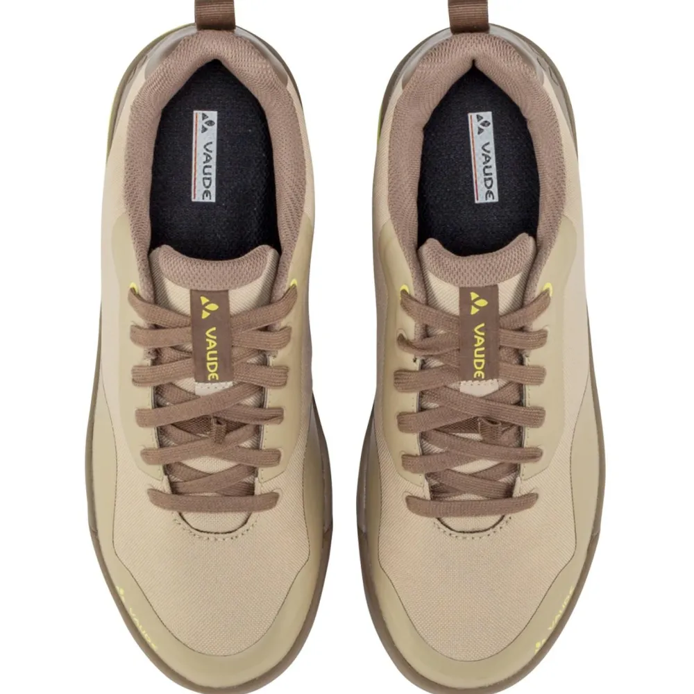 Mit V-Flow Stabilitätsindex 3 und flacher Vaude AM Flat Sohle mit SUPtraction Flat Gummimischung sorgen die Women’s Moab Syn II Radschuhe für tollen Tragekomfort beim Mountainbiken. Die robusten Allrounder bestehen größtenteils aus recyceltem Polyester und sind mit einer dämpfenden EVA Zwischensohle und einer anatomisch geformten Einlegesohle versehen. Im Fersenbereich und an den Fussspitzen sind die Women’s Moab Syn II Radschuhe extra verstärkt und schützen damit auch die Füsse. Vaude stattet die MTB-Schuhe mit einem atmungsaktiven und feuchtigkeitsregulierenden Innenfutter und einem klassischen Schnürsystem aus, mit dem sich die Schuhe bequem anpassen lassen. Praktische Anziehschlaufen an den Fersen machen die strapazierfähigen Flat-Pedal Schuhe komplett.