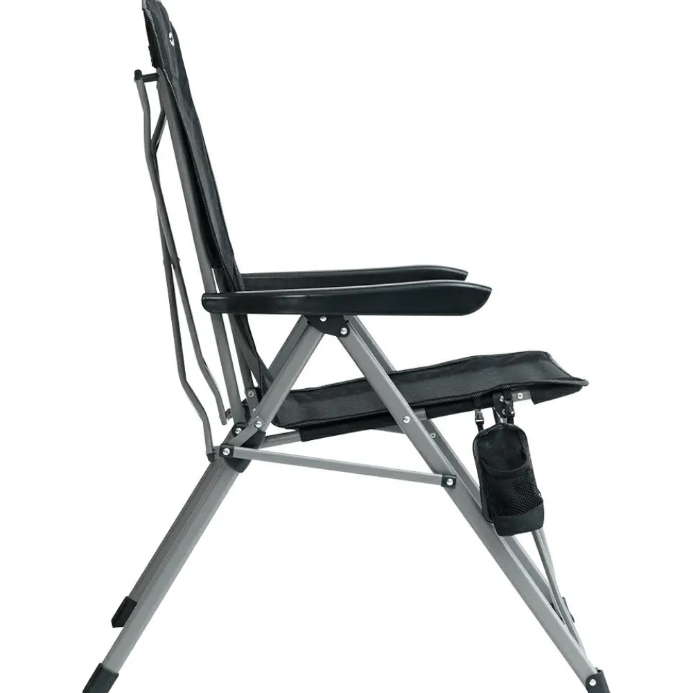 Der Campo Relaxsessel von Outwell ist ein verstellbarer Campingstuhl mit hoher Rückenlehne. Du kannst ihn in 3 Positionen einstellen. Die Sitzfläche besteht aus recyceltem Polyester, der pulverbeschichtete Stahlrahmen sorgt für Stabilität. Der Sessel lässt sich kompakt zusammenklappen, verfügt über eine Arretierfunktion im aufgeklappten Zustand und ist mit einem abnehmbaren Getränkehalter ausgestattet.