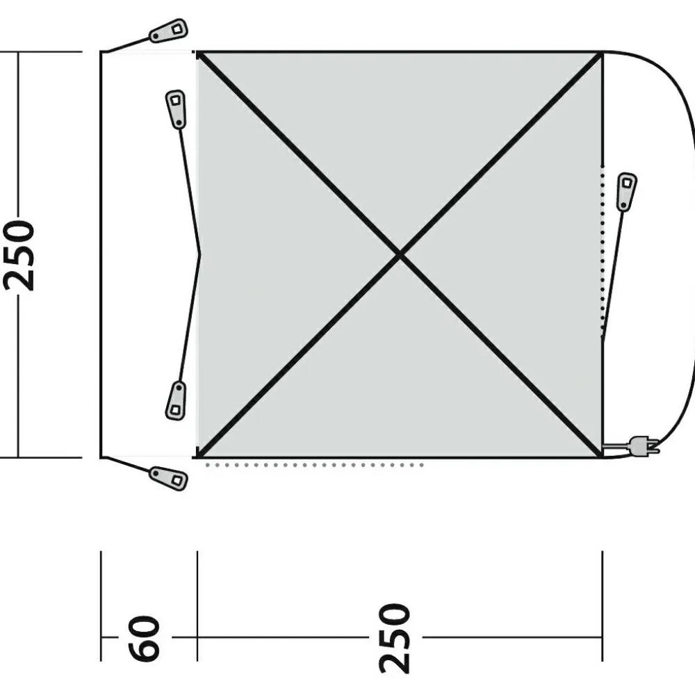 Die Konstruktion des Pine Hills Busvorzelts ist auf einfache Handhabung und Stabilität ausgelegt. Mit dem leichten und dennoch robusten Duratec Fiberglasgestänge lässt sich das Zelt mühelos aufbauen. Die großzügigen Maße von 250 cm Länge, 250 cm Breite und 205 cm Höhe bieten ausreichend Platz für Komfort und Funktionalität.