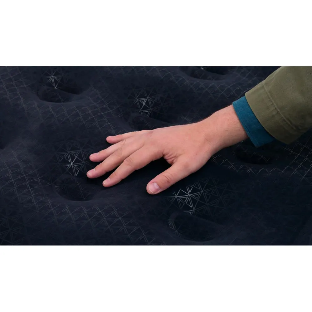 Eine integrierte elektrische 230-V-Pumpe übernimmt das Aufblasen und Ablassen der Luft auf Knopfdruck, sodass das Bett schnell einsatzbereit ist. Das Doppelventil unterstützt die kontrollierte Luftregulierung. Nach der Nutzung lässt sich das Luftbett kompakt zusammenpacken und in der mitgelieferten Tragetasche verstauen.