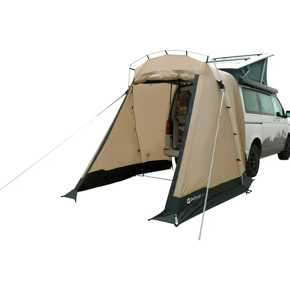 Das Outwell Sand Van ist ein leichtes, statisches Busvorzelt, das speziell für die Heckklappe von Campervans entwickelt wurde. Es eignet sich gut für kurze Pausen unterwegs oder als Aufenthaltsbereich auf dem Stellplatz. Das Außenzelt aus Outtex 3000 Select CARE Polyester schützt mit 3000 mm Wassersäule vor Regen. Das Vorzelt lässt sich schnell an der Heckklappe befestigen und bei Bedarf ebenso leicht wieder entfernen.