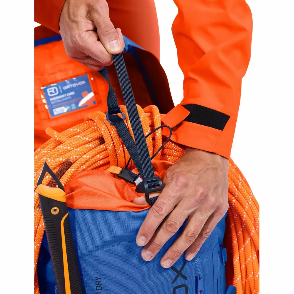 Ein Rucksack, der keine Kompromisse eingeht und für anspruchsvolle Alpinisten gedacht ist, die bei allen Bedingungen am Berg unterwegs sein möchten: der Peak 40 Dry von Ortovox! Der Tourenrucksack eignet sich sowohl für hochalpine Gipfel als auch für spannende Mehrtagestouren. Schon allein aus Sicherheitsgründen sollte der Gipfeltag eigentlich ein sonniger sein – trotzdem ist Regen im Zustieg keine Seltenheit. Dementsprechend wurde dieser Rucksack mit einer herausragenden Wassersäule von 50.000 mm versehen, was bedeutet, dass er absolut wasserdicht ist und der Rucksackinhalt stets trocken bleibt.
