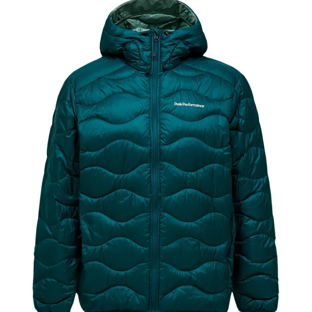 Die Helium Down Hood Jacket von Peak Performance lässt sich sowohl als Außenschicht oder als zusätzliche Wärmeschicht unter einer Shell-Jacke tragen. Peak Performance verwendet ausschließlich nachhaltig bezogene Daunen mit Herkunftsnachweis. Ein weiteres Ausrufezeichen in Sachen Nachhaltigkeit setzt die Jacke mit ihrer PFC-freien Imprägnierung und den recycelten Materialien, aus denen sie hergestellt wurde.