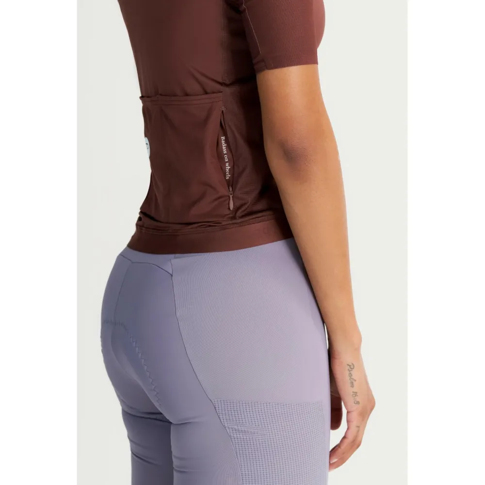 Das Women’s Signature Jersey von Peppermint ist Dein idealer Begleiter für lange Touren auf dem Rennrad oder Gravelbike. Der durchgehende Front-Reißverschluss ermöglicht es Dir, die Belüftung während der Fahrt individuell zu regulieren, sodass Du stets ein angenehmes Körperklima behältst. Mesh-Einsätze sorgen zusätzlich dafür, dass Du auch bei intensiven Anstrengungen kühl bleibst. Praktische Rückentaschen bieten ausreichend Platz für Snacks und wichtige Utensilien, während reflektierende Details Deine Sichtbarkeit bei schlechten Lichtverhältnissen erhöhen. Der Silikongripper verhindert zudem ein Verrutschen des Trikots und sorgt so für optimalen Tragekomfort.