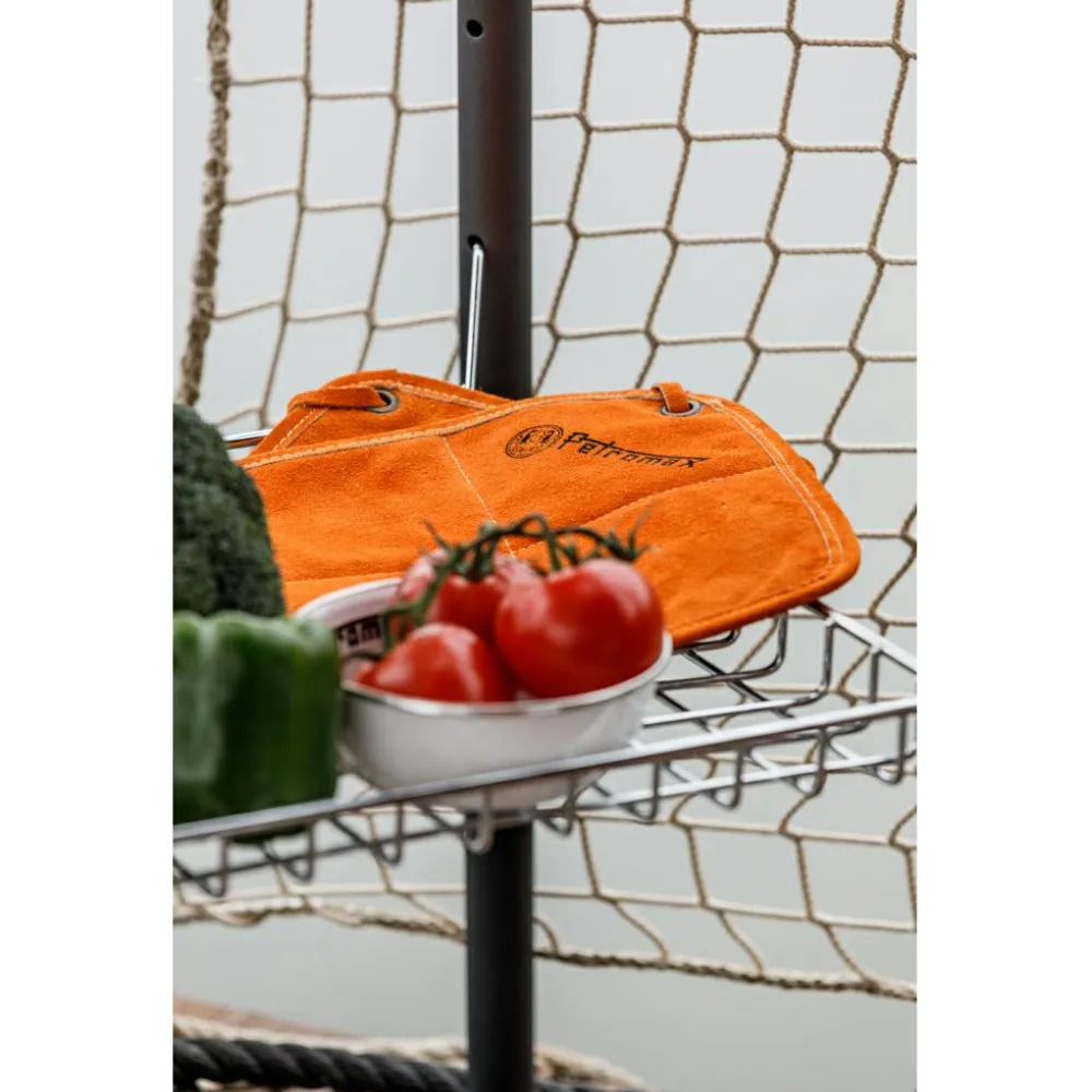 Der Petromax Ablagekorb liefert Dir zusätzlichen Stauraum beim Draußen-Kochen mit Deinem Feuertopf. Der Ablagekorb wird unkompliziert über die vier Haken in den vorbereiteten Lochführungen der Standbeine Deiner Draußen-Küche eingehängt, um Deine Speisen, Dein Geschirr oder Dein Grillwerkzeug griffbereit zu lagern. Denn der Ablagekorb lässt sich in zwei Positionen einhängen und bietet Dir in jeder Höhe ausreichend Platz für einen hygienischen und sicheren Abstand zum Untergrund.