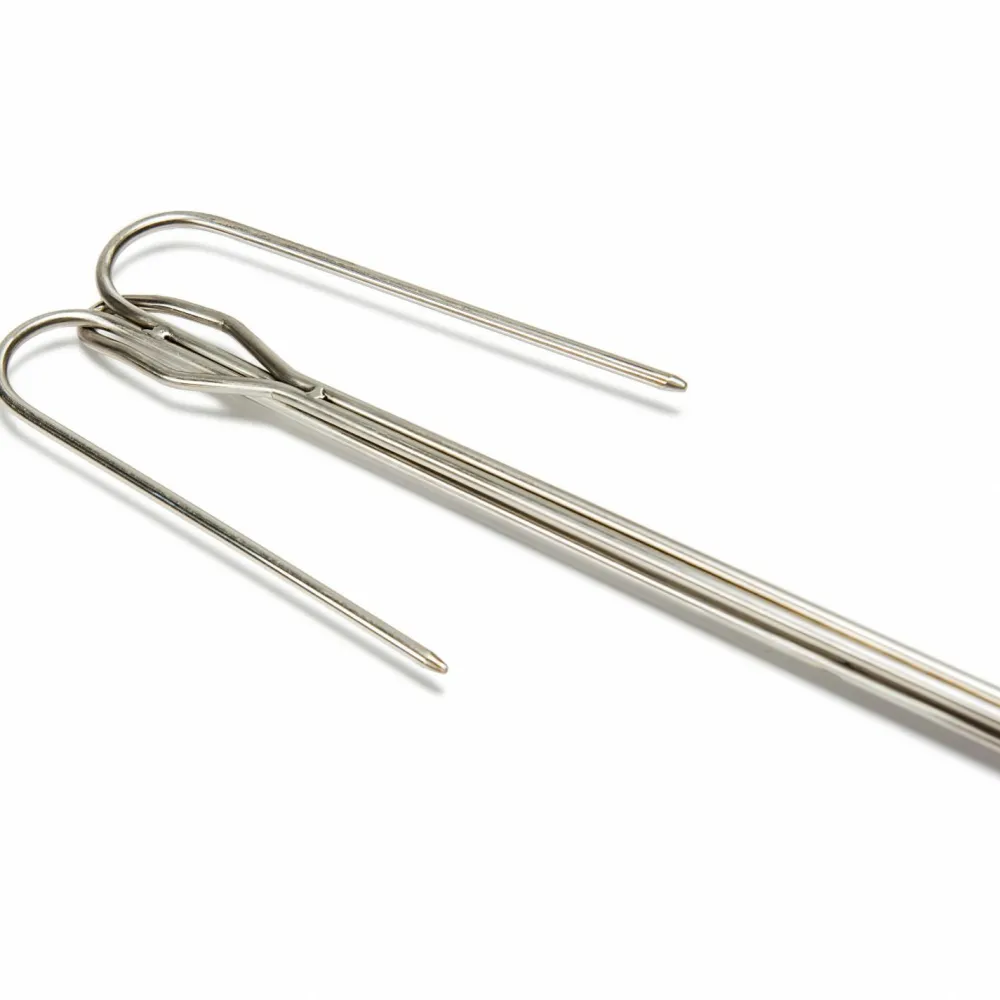 Mit diesem Lagerfeuerspieß kann man sicher seine Würstchen, sein Gemüse, sein Stockbrot oder auch seine Marshmallows grillen. Die Zinken von diesem Spieß sind nach hinten gebogen, damit das Grillgut so gut wie gar nicht herunterfallen kann. Deshalb ist er auch besonders gut für Kinder geeignet. Da der Spieß aus rostfreiem Edelstahl gefertigt wurde, kann er auch ganz einfach gereinigt werden. Der Griff ist aus Buchenholz gefertigt und die feinen Rillen des Griffs sorgen dafür, dass er sicher in der Hand liegt. Mit diesem Lagerfeuerspieß hat man immer genug Abstand zum Feuer und kann in Ruhe grillen, ohne dass man zu nah ans Feuer kommt.