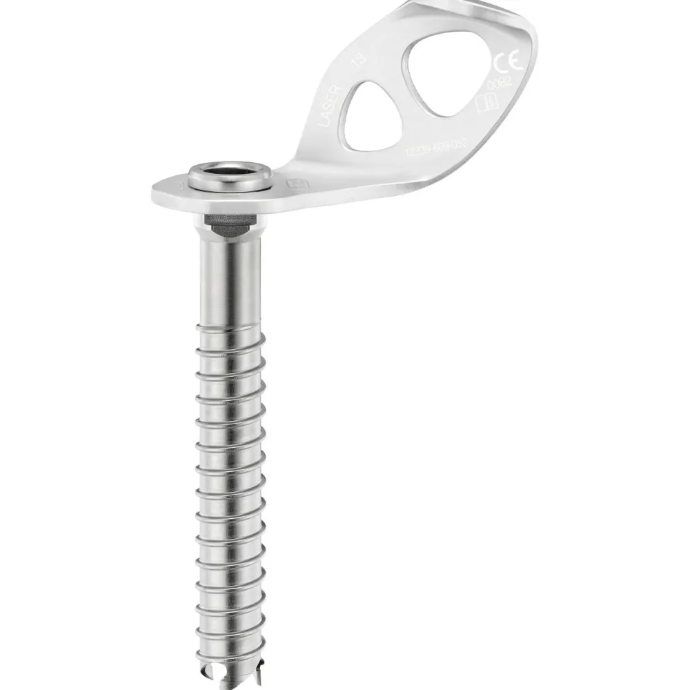 Bei der Laser von Petzl handelt es sich um eine kompakte Eisschraube mit scharfen Zähnen, deren Gewindedesign, die glatte Oberfläche und die Aluminiumlasche für leichtes und reibungsloses Eindrehen ins Eis sorgen. Der Schaft und die Bohrkrone aus Stahl machen sie zu einer effizienten und stabilen Eisschraube. Es gibt sie in drei Längen: 13 cm, 17 cm und 21 cm.