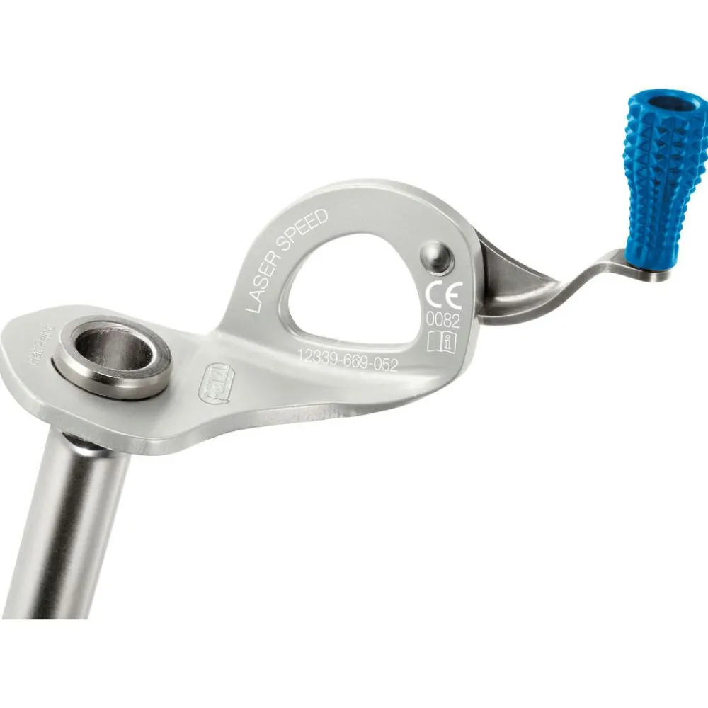Die Laser Speed Eisschraube von Petzl lässt sich schnell und effizient ins Eis schrauben. Die Form der Bohrkrone mit den drei Zähnen unterstützt dabei schnelles Greifen im Eis. Der Schaft und die Bohrkrone aus Stahl machen die Eisschraube besonders widerstandsfähig und robust. Die integrierte, umklappbare Kurbel aus Aluminium sorgt für schnelles und einfaches Setzen.