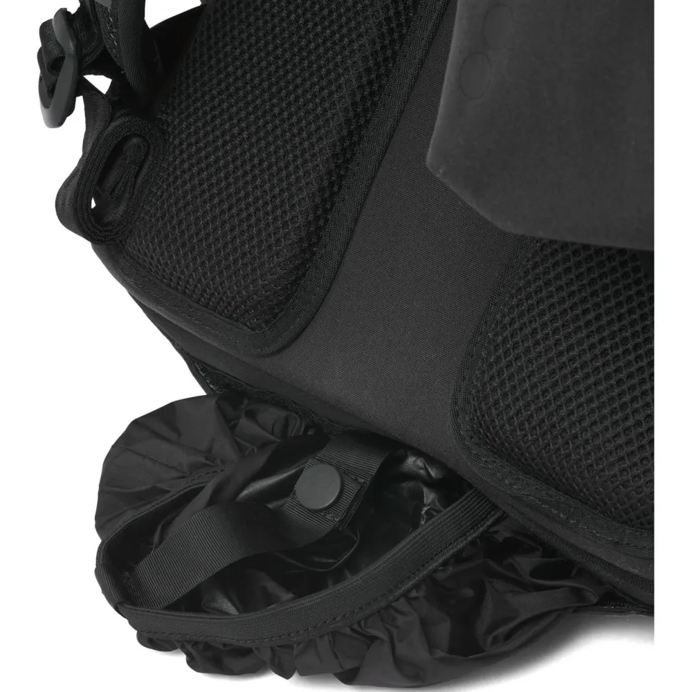 Der Rucksack besteht komplett aus recyceltem Polyamid, welches aus Altreifen gewonnen wird. Das Material ist besonders robust und hält leichten Regen zuverlässig ab. Bei stärkerem Regen packst Du einfach die integrierte Regenhülle heraus. Die Reißverschlüsse sind ebenfalls gegen Nässe geschützt.