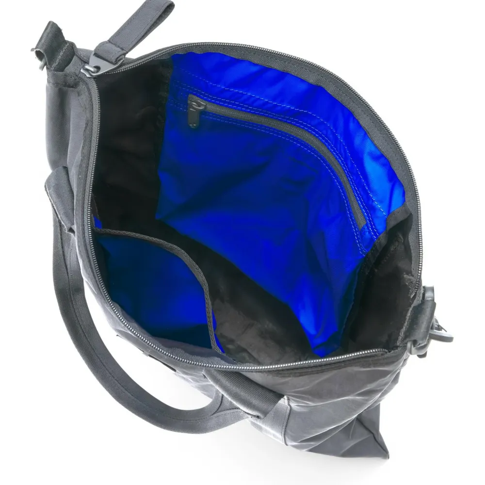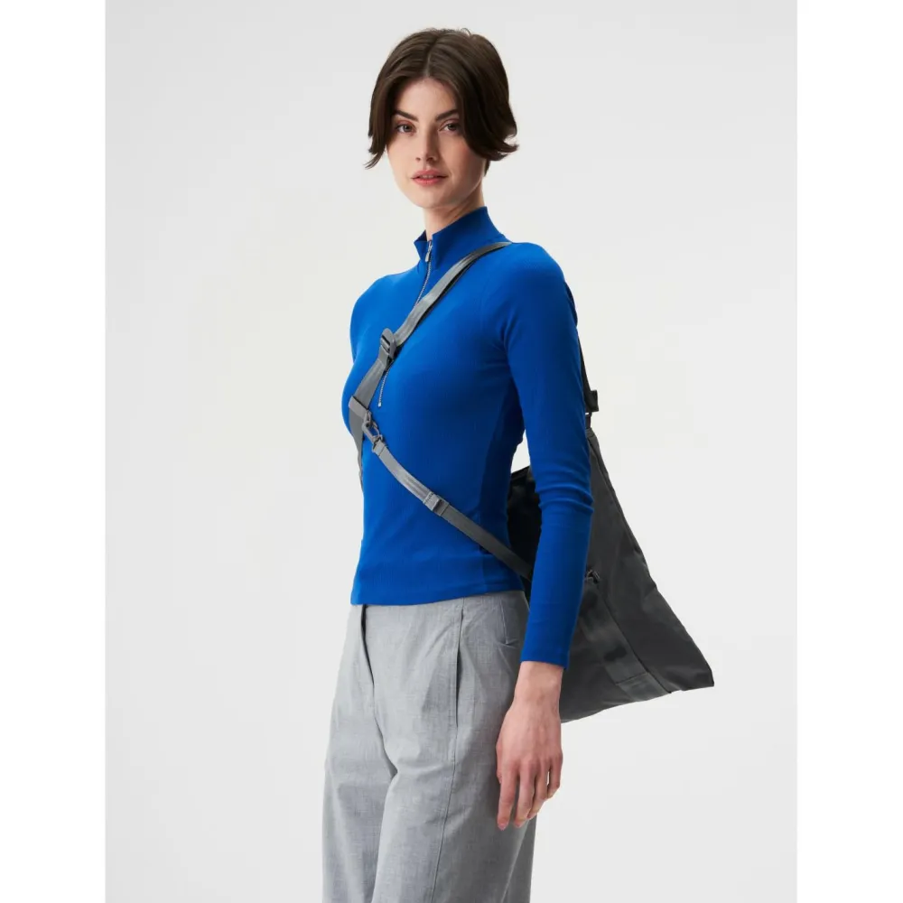 Die Tasche ist aus recyceltem Polyamid hergestellt und mit einer PFC-freien DWR-Imprägnierung veredelt. Hierdurch ist sie vor leichtem Regen geschützt. Bei stärkerem Regen ziehst Du einfach die integrierte Schutzhülle heraus.