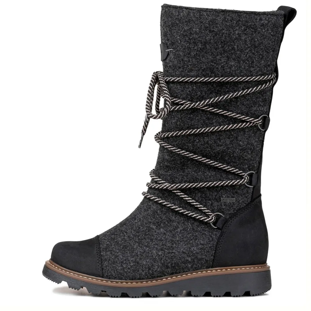 Mit dem Women’s Ruka GTX Boot von Pomar bist Du stilvoll und geschützt unterwegs – selbst bei frostigen Temperaturen. Das moderne Design mit schlanker Silhouette verbindet finnische Tradition mit zeitgemäßer Funktionalität. Das Obermaterial aus Wollfilz mit Verstärkungen aus gewachstem Nubukleder bieten Dir wasser- und schmutzabweisenden Schutz, während der seitliche Reißverschluss und die Schnürung für eine individuelle Passform sorgen.