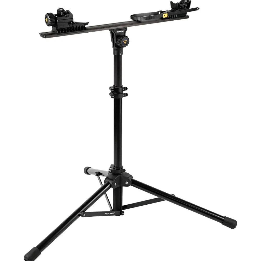 Der PrepStand X Pro Montageständer von Topeak kommt mit leichten aber stabilen Materialien daher. Ein 4-fach einstellbarer und faltbarer Profi-Montageständer für die Heimwerkstatt, Rennen oder Events. Der innovative Klemmmechanismus für Vorderradachsen ist ohne Umbauten mit Steckachsen sowie Schnellspannern kompatibel.