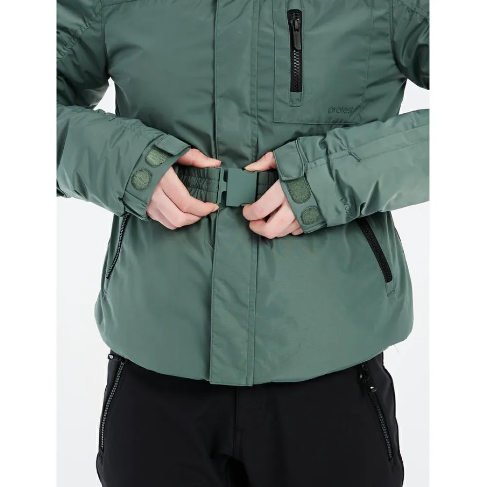 Die Jacke gehört zur PVRE-Serie von Protest und ist mit einer PFC-freien, wasserabweisenden Beschichtung ausgestattet. Zudem ist sie atmungsaktiv und sorgt dafür, dass vor Nässe Feuchtigkeit von innen entweichen kann. Der integrierte Schneefang, die feste Kapuze und die ergonomisch vorgeformten Ärmel bieten zusätzlichen Schutz und Bewegungsfreiheit. Praktische Features wie eine Skibrillentasche, eine Liftpasstasche sowie Innenbündchen machen die Jacke zum optimalen Begleiter für die Piste.