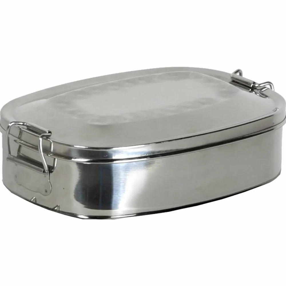 Die Proviantdose von Basic Nature muss mit auf Tour! Egal ob Brotzeit, Obst, Erste Hilfe Bedarf oder andere wichtige Kleinigkeiten, hier findet alles seinen Platz. Die Dose ist aus Edelstahl gefertigt und der Deckel wird von zwei stabilen Rollklammern gehalten. Wer möchte kann die Dose – dann natürlich ohne Deckel – auch auf Camping – oder Gaskochern verwenden um mitgebrachte Speisen aufzuwärmen. Top!