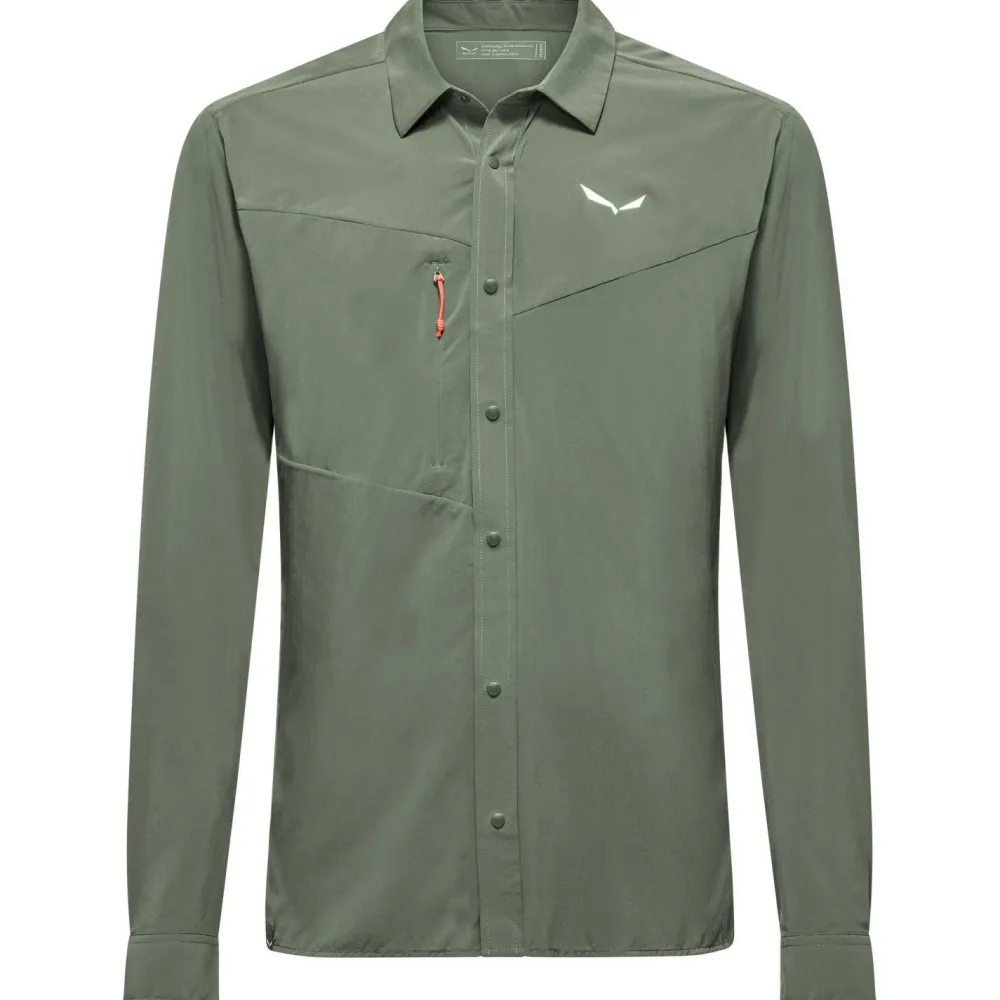 Das Puez L/S Shirt von Salewa vereint Leichtigkeit und Funktionalität für aktive Tage in der Natur. Mit nur 150 g fällt es dabei kaum ins Gewicht. Ein besonderes Highlight für Dich bietet die spezielle Unterarmkonstruktion mit Zwickel, welche für uneingeschränkte Bewegungsfreiheit sorgt. Der reguläre Schnitt bietet Komfort und Vielseitigkeit. Praktische Details wie eine Brusttasche mit Reißverschluss, eine Knopfleiste mit Druckknöpfen und ein klassischer Kragenabschluss runden das Design für Dich ab.