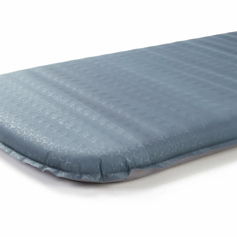 Aufgeblasen misst die Isomatte eine Höhe von fünf Zentimetern. Dadurch liegst Du ausgesprochen komfortabel. Ohne Luft lässt sich die Matte auf ein handliches Maß komprimieren und leicht mitnehmen. Mit 680 Gramm gehört sie zu den leichteren Allround-Matten. Eine Transporthülle ist im Lieferumfang enthalten, genauso wie ein Reparaturset. Das Außenmaterial besteht aus recyceltem Polyester und ist PFC-frei.