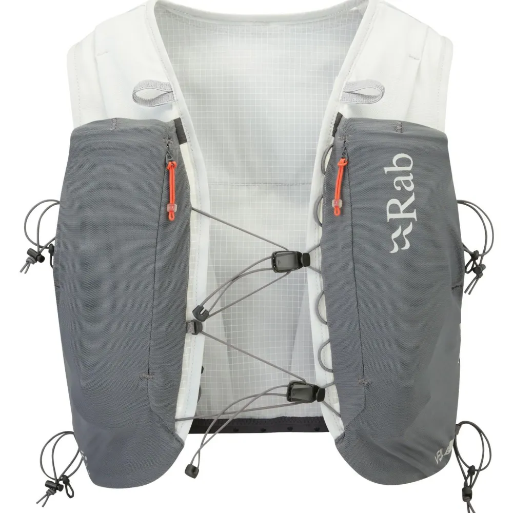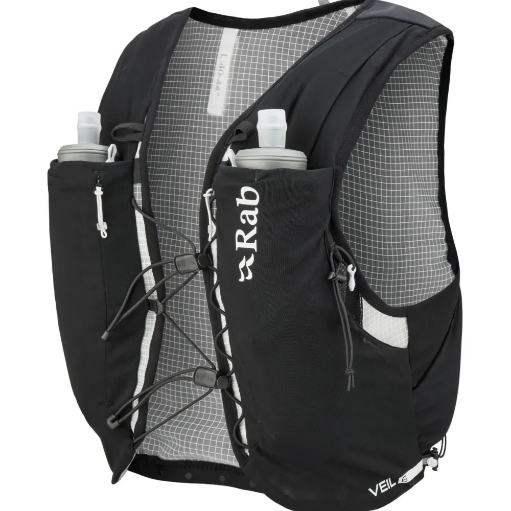 Der Veil 6 von Rab begleitet Dich auf Deinen größten Herausforderungen. Er ist ein Trailrunningrucksack in Westenform mit einem Gesamtvolumen von sechs Litern. In ihm verstaust Du nicht nur Proviant, Smartphone und Erste-Hilfe-Set. Er versorgt Dich darüber hinaus dank eines Rückenfachs für eine 2l-Trinkblase und zwei im Lieferumfang inbegriffener 500ml-Wasserbeutel unterwegs mit Flüssigkeit.
