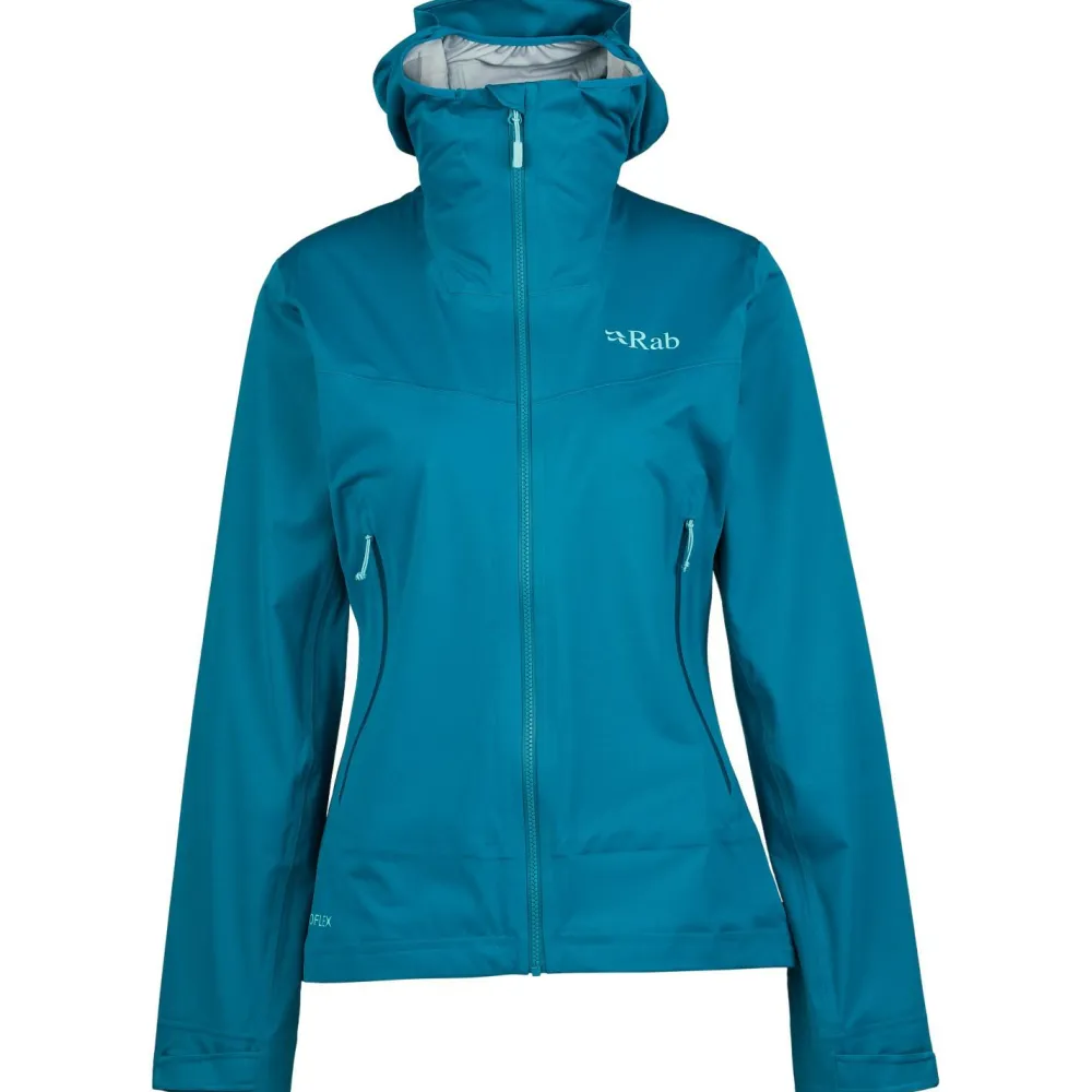 Für bewegungsintensive Unternehmungen bei miesem Wetter: die Women’s Kinetic 2.0 Jacket von Rab.