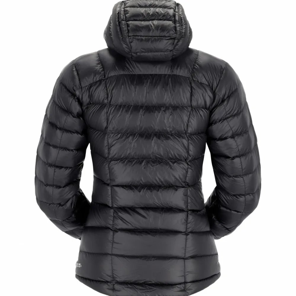 Die Women’s Mythic Alpine Jacket von Rab sorgt für Unterstützung bei anspruchsvollsten Expeditionen. Dank der hocheffizienten und extrem bauschstarken Gänsedaunen mit 900 cuin sorgt die Jacke für eine perfekte Verbindung aus Isolation und Gewichtsreduktion. Die Daunen sind zudem mit einer Nikwax Imprägnierung versehen, welche sie unempfindlich gegen über Nässe und Verklumpen macht. Somit ist auch bei schlechter Witterung oder hoher Luftfeuchtigkeit eine hohe Isolationsleistung sichergestellt.