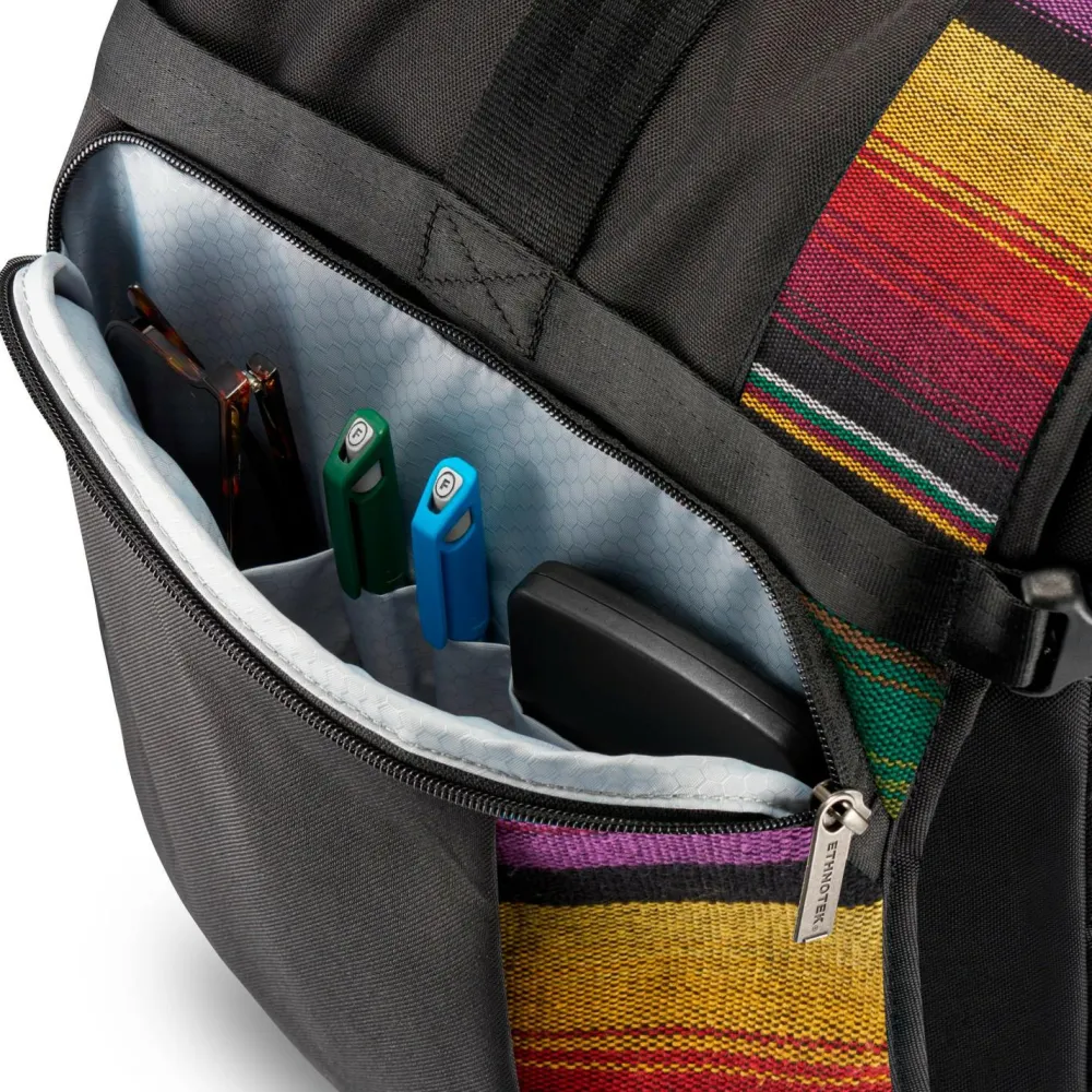 Ein echtes Highlight ist das wechselbare Frontdesign: Das Thread™-System erlaubt es Dir, die Vorderseite Deines Rucksacks individuell zu gestalten – jedes Paneel wird aus handgefertigten Stoffen gefertigt und macht Deinen Raja Pack zum Unikat. Die Materialstärke von 840 Denier steht für Robustheit im Alltag wie auf Reisen. So vereint dieser Rucksack modernes Design mit traditioneller Handwerkskunst – ein Statement für alle, die Wert auf Individualität legen.