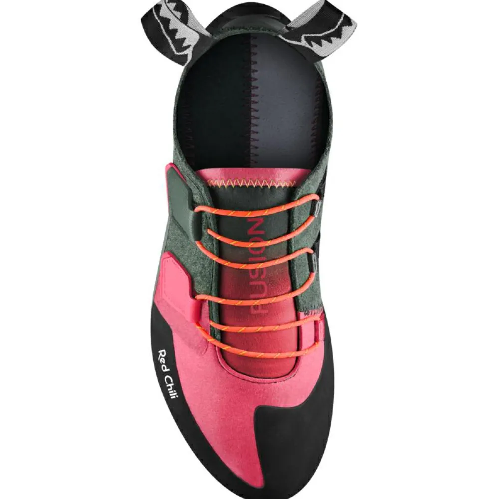 Für eine gute Kletterperformance brauchen auch Menschen mit schmalen Füßen optimal sitzende Schuhe. Die Fusion Lv II Kletterschuhe von Red Chili sind genau dafür ausgelegt. Performance und Komfort werden hier einfach kombiniert: die Schuhe eignen sich mit neutralem Leisten und mittlerer Vorspannung für Halle und Fels. Für Feingefühl, Haltbarkeit und Kantenstabilität sorgt die Red Chili RX1 Sohle. Durch das Obermaterial aus Mikrofaser bleiben die Schuhe formstabil und das Material dehnt sich nicht aus.