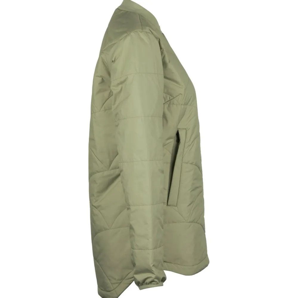 Ihre Füllung aus Polyester und Kapok sorgt für eine optimale Isolierung, während das recycelte Polyester ein nachhaltiges Produkt garantiert. Die Jacke verfügt über zwei praktische Taschen mit Reißverschluss und das feminine Steppmuster sieht obendrein richtig gut aus. Der weiche Kragen bietet zusätzlichen Komfort und die atmungsaktiven Eigenschaften machen diese Jacke zum idealen Begleiter für Outdoor-Aktivitäten.