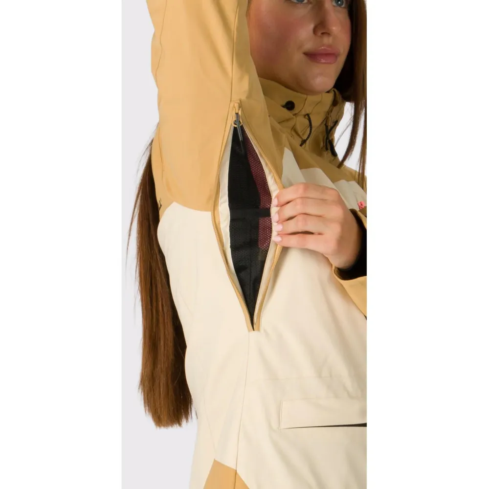 Zusätzlich Ventilation bieten in der Women’s Violet Skijacke die beiden praktischen Unterarmreißverschlüsse. Zur weiteren Ausstattung gehören verstellbare Bündchen mit Klettverschluss und elastischen Innenbündchen. Außerdem schützt der integrierte Schneefang im Jackensaum auch im Tiefschnee vor Nässe und Kälte. Die Rehall Jacke ist mit hohem Kragen und verstellbarer Kapuze ausgerüstet.