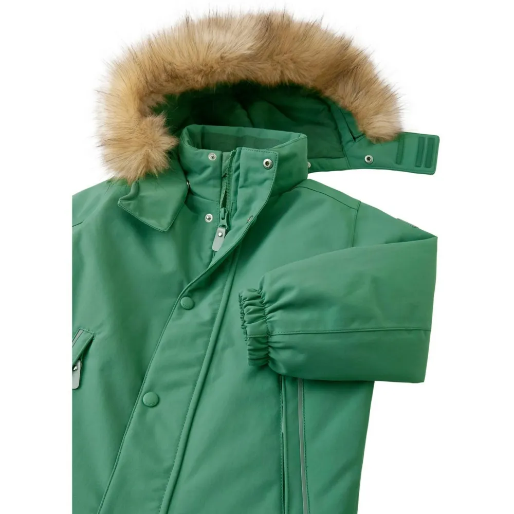 Die verstellbare, abnehmbare Kapuze mit weichem Kunstfellbesatz bietet zusätzlichen Wetterschutz, während die beiden Fronttaschen mit Reißverschluss Platz für Kleinigkeiten bieten. Die elastischen Bündchen und die abnehmbaren Fußschlaufen garantieren einen optimalen Sitz in jeder Situation und machen den Kid’s Stavanger von Reima zum idealen Begleiter für den Winteralltag!