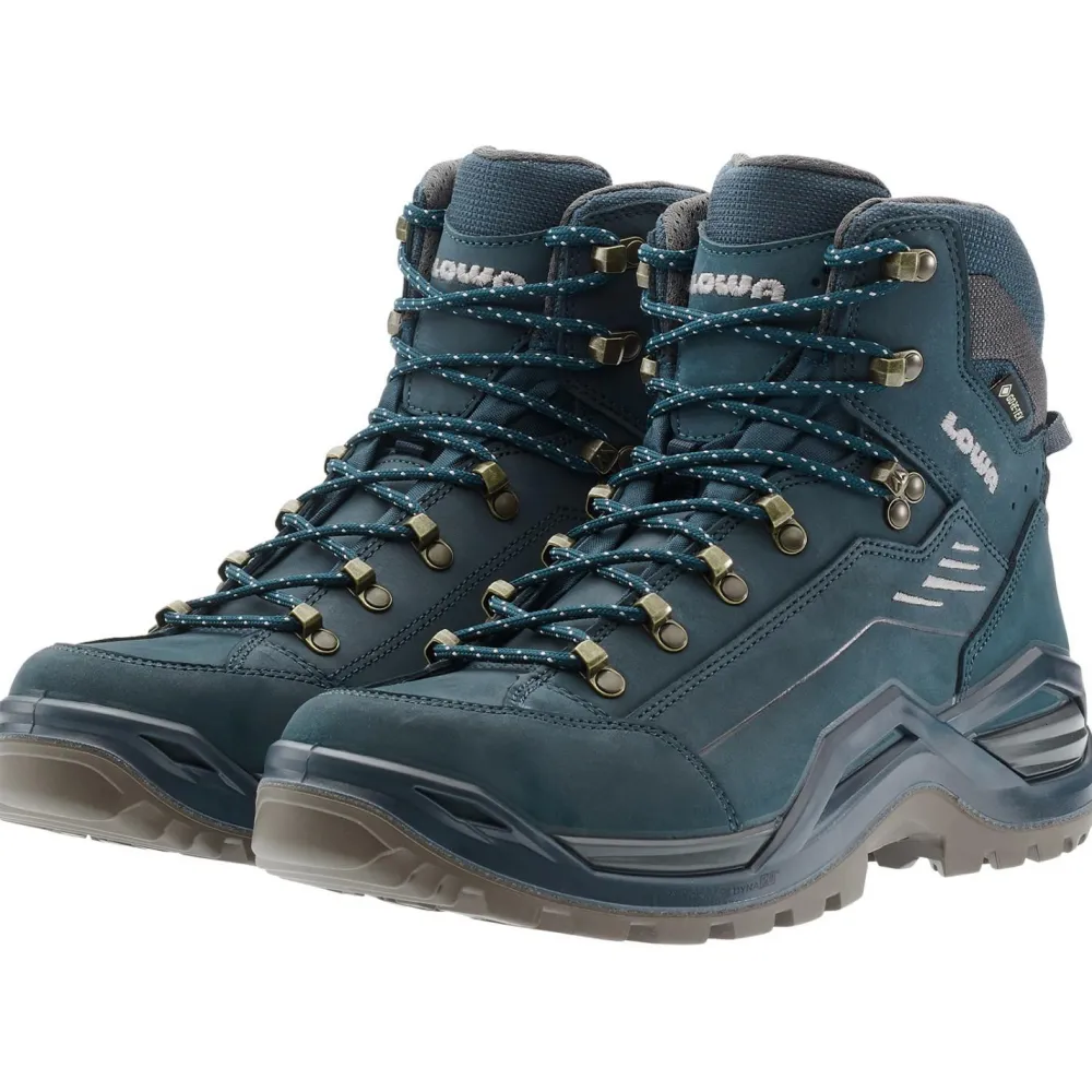 Die Bayern von Lowa sind ohne Zweifel die absoluten Experten in der Herstellung von hochwertigsten Wanderschuhen! Und davon legt auch der Renegade Evo GTX Mid beredt Zeugnis ab. Der die Sohle umspannende Crossover Stability Frame sorgt für besten Halt und Stabilität, und durch die perfekt konstruierte Wasserlasche ist ein reibungsloser Einstieg möglich. Das Design des Obermaterials ist auf die Minimierung von Nähten ausgelegt, sodass potenzieller Druckstellenbildung von vorneherein nach besten Möglichkeiten ein Riegel vorgeschoben wird. Das alles sorgt für hohen Tragekomfort, wie er einem zeitgemäßen Wander- und Trekkingschuh ansteht! Auch optisch kommt er behutsam modernisiert daher, so sind beispielsweise die Schnürsenkelhaken am Schaft eckig gehalten, was die futuristische Form des Stability Frame aufgreift.