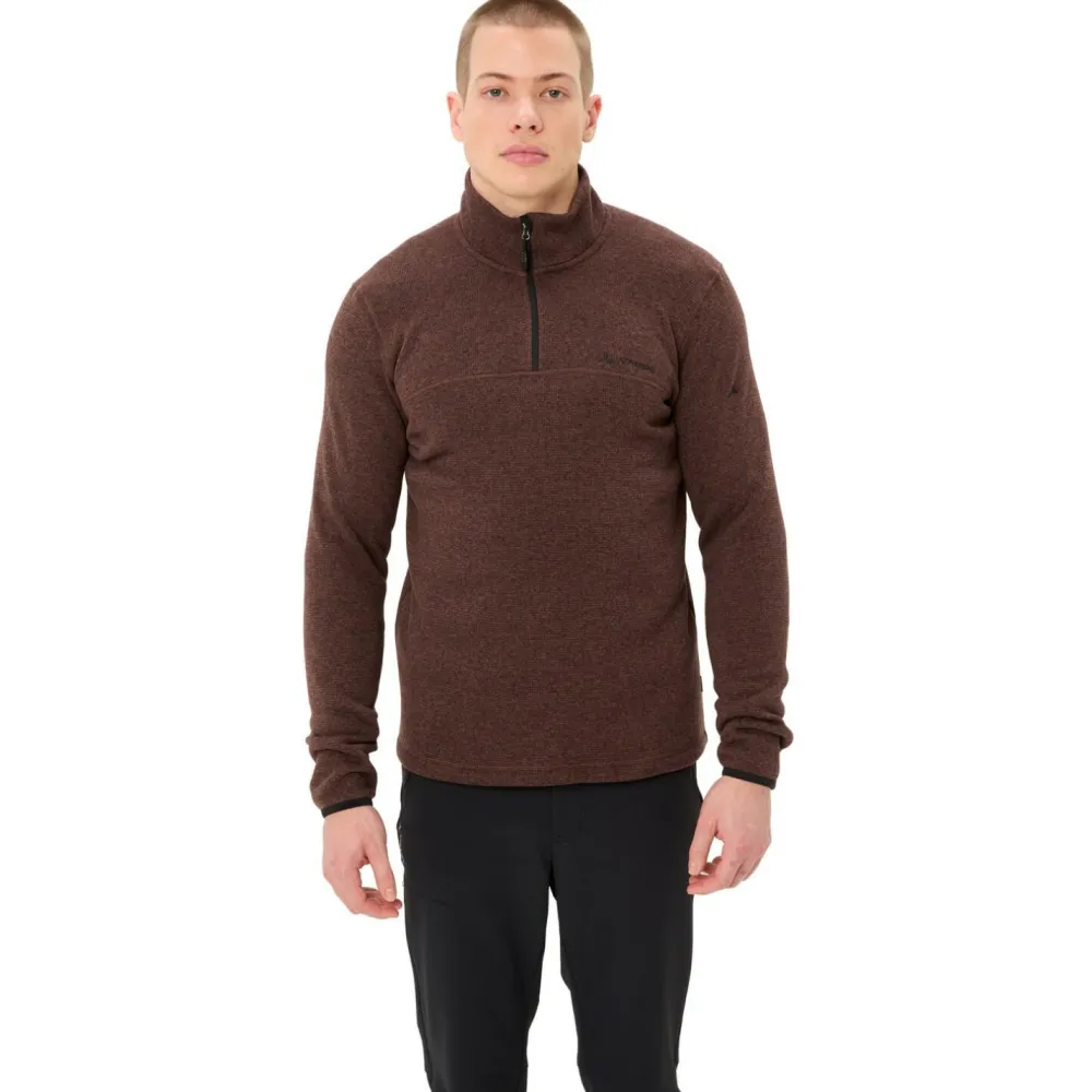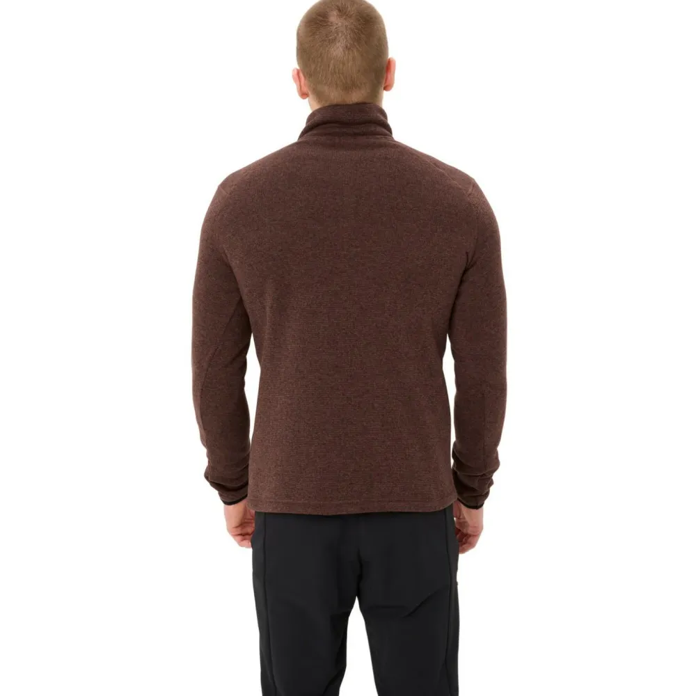 Der Rienza Pullover III von Vaude zeigt ein gewisses Understatement: völlig unprätentiös kommt der Fleece-Pullover daher; klassisch, einfach und geradlinig geschnitten, erhältlich in vier klaren, eher gedeckten Farben. Dabei besteht er aus einem schnelltrocknenden und strapazierfähigen Fleece-Gewebe, dass Dich bei Wanderungen im Kühlen oder auch einfach im herbstlich- winterlichen Alltag kuschelig warm hält. Je nach subjektivem Empfinden, absoluter Temperatur und Wetterverhältnissen als Midlayer oder Außenschicht. Der kurze 1/4-Front-Reißverschluss erleichtert Dir einerseits das Anziehen, Du kannst ihn aber andererseits auch als Belüftungsöffnung nutzen, wenn es mal wärmer (oder die Wanderung anstrengender) wird. Als Bonus kommt die -bei Vaude ohnehin nicht unübliche- umweltfreundliche Produktion obendrauf; der Rienza Pullover III wird zu 100% aus recycelten PET-Flaschen hergestellt.
