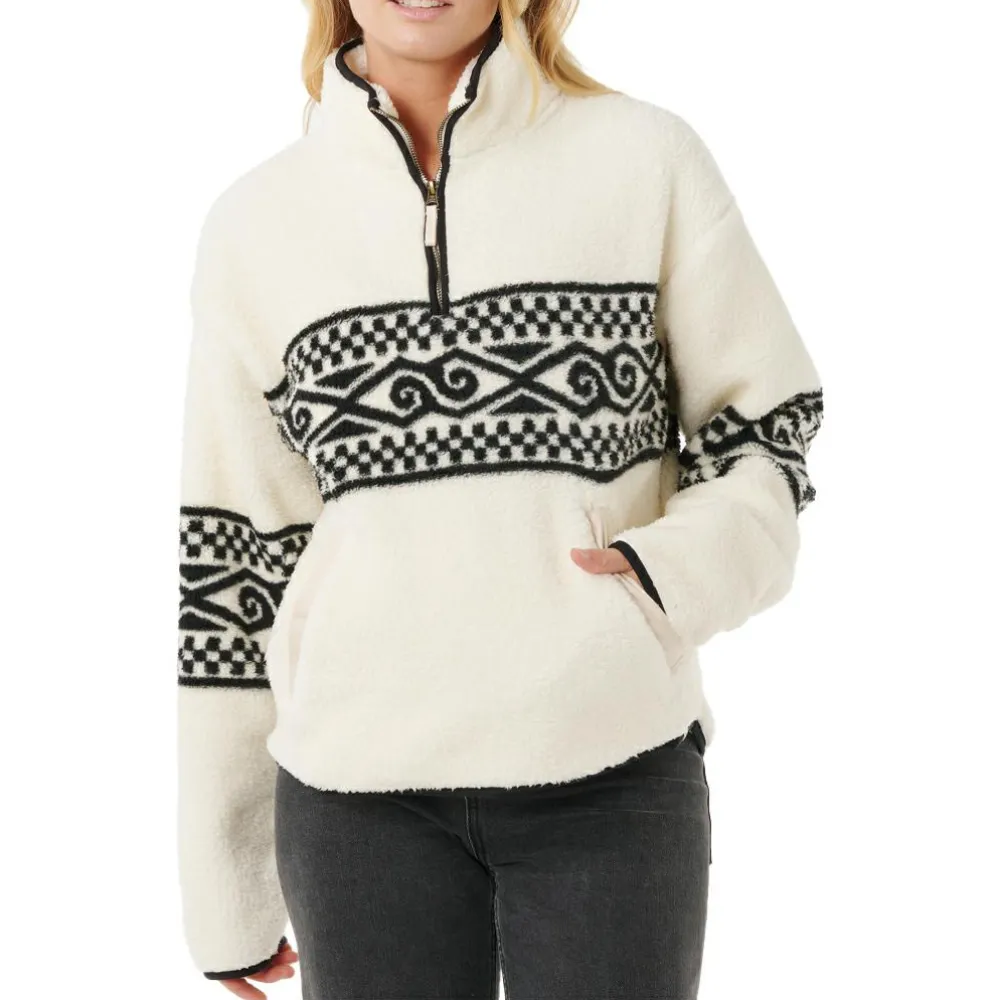 Der Women’s Oceanic Cosmic Kiss Polar von Rip Curl eignet sich für jeden Tag in Deiner Freizeit. Er ist atmungsaktiv und schnelltrocknend. Mit dem halblangen Front-Reißverschluss kannst Du ihn flexibel tragen. Der Stehkragen schmiegt sich angenehm an Deinen Hals an und bietet Dir Wärme. Die beiden Seitentaschen eignen sich hervorragend, um Deine Hände zu wärmen. Mit dem Boho-Look fällt er sofort ins Auge. Du kannst den Fleecepullover zur Jeans, aber auch zur Freizeithose kombinieren.
