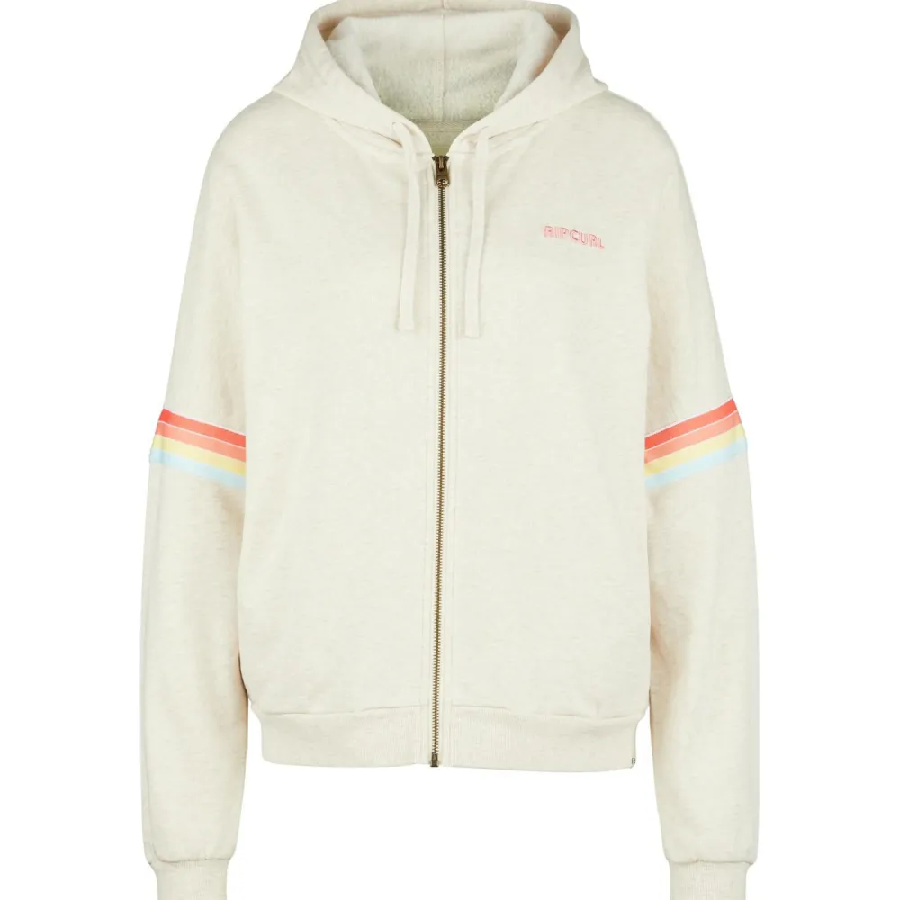 Der Women’s Surf Revival Zip Thru von Rip Curl eignet sich für vielseitige Unternehmungen in der Freizeit. Er ist atmungsaktiv und schnelltrocknend. Der Hoodie schmiegt sich angenehm an Deinen Körper an und überzeugt dabei mit höchstem Tragekomfort. Die Kapuze kann dank des Kordelzugs individuell angepasst werden. Die farblichen Akzente an den Ärmeln ziehen alle Blicke auf sich. Damit kann der Hoodie vielseitig kombiniert werden.