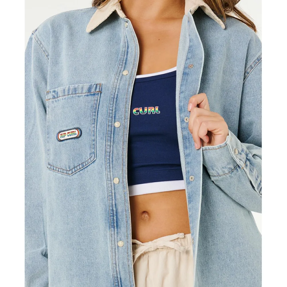 Mit dem Women’s Surf Side Relaxed Denim Shirt Hemd von Rip Curl aus robustem Jeans-Stoff siehst Du richtig lässig aus. Dank des oversized Schnitts behältst Du Deine komplette Bewegungsfreiheit. Du kannst es im Sommer einfach schnell überwerfen, wenn es abends kühl wird. Mit dem Kontrast-Kragen aus hellem Cord-Stoff ist das Women’s Surf Side Relaxed Denim Shirt Hemd ein richtiger Hingucker.