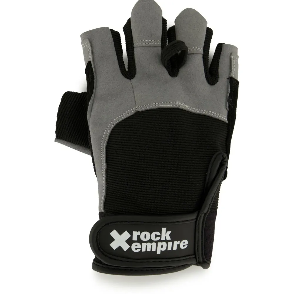 Ein unverzichtbares Accessoire für die nächste Via Ferrata – die Rocker von Rock Empire! Die Klettersteighandschuhe bieten mit ihren Stretcheinsätzen eine optimal bequeme Passform und viel Bewegungsfreiheit für die Finger. Die Taktilität ist dank des Half-Finger-Designs ebenfalls nicht eingeschränkt, während gleichzeitig robuste Einsätze aus PVC an den Handflächen die Hände vorm Drahtseil schützen. Mit Klettverschlüssen schließen die Handschuhe am Handgelenk gut ab. Laschen helfen beim An- und Ausziehen, und mit der kleinen Schlaufe sowie Karabinerlöchern am Schaft sind die Rock Empire Rocker stets am Klettergurt oder am Rucksack zur Hand!