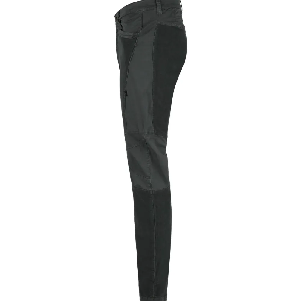 Hergestellt aus Cord trägt sich die lange Hose angenehm auf der Haut und sieht lässig aus. Das Material ist elastisch. Weit entfernte Tritte werden somit entspannt erreicht. Verstärkungen an den Knien schützen bei Kontakt mit der Wand und machen die Hose besonders abriebfest. In verschiedenen Taschen auf der Vorder- und Rückseite lässt sich nötiger Kleinkram schnell verstauen. Bei Bedarf kann die Hose mit einem Gürtel ergänzt werden.