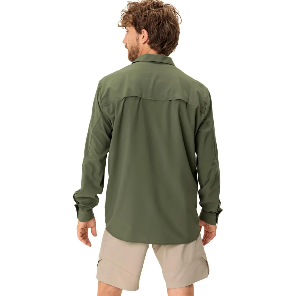 Das umweltfreundliche Rosemoor L/S Shirt II Hemd von Vaude besteht zu großen Teilen aus recyceltem Polyester und ist mit dem Green Shape Label ausgezeichnet. Beim Trekking und Wandern überzeugt das leichte Hemd durch angenehme Atmungsaktivität und hohen UV-Schutz. Gleichzeitig schützt das Hemd vor Mücken. Das Rosemoor L/S Shirt II Hemd ist mit einer durchgehenden Knopfleiste ausgestattet und verfügt über zwei praktische Brusttaschen. Bei höheren Temperaturen lassen sich die Ärmel aufrollen und das Vaude Hemd wird zum funktionellen Kurzarmhemd.