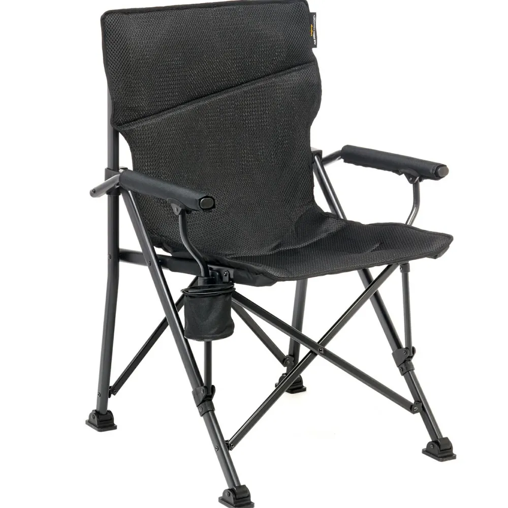 Auf Reisen oder im eigenen Garten gemütlich sitzen: der Campingstuhl Roxy von Uquip wird jedem Einsatz gerecht. Mit seinen Maßen von 96 x 22 cm, einem Gewicht von 5450 g, einer Sitzbreite von 51 cm bei einer Sitzhöhe von 45 cm ist der faltbare Campingstuhl vielfältig einsetzbar. Der pulverbeschichtete Stahlrahmen verleiht dem Stuhl Stabilität, während der Bezug für ein angenehmes Sitzgefühl sorgt. Mit seinen modernen Extras, einem Flaschenhalter inklusive Flaschenöffner, wird der Uquip Roxy Campingstuhl zum Allrounder für die nächste Reise.