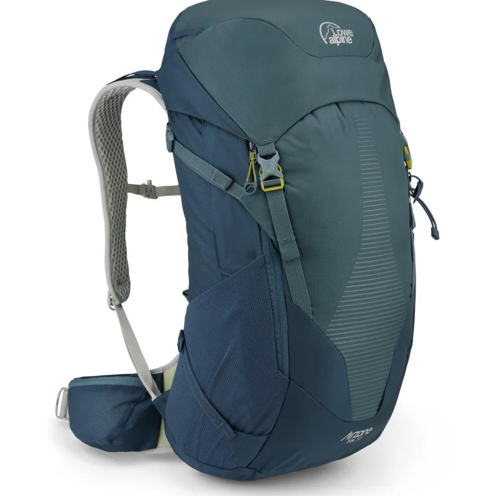 Lowe Alpine fertigt den AirZone Trail 30 Wanderrucksack aus leichtem und strapazierfähigem 210D 6.6 Mini Ripstop mit HydroShield. Das funktionelle Gewebe schützt den Rucksackinhalt gut vor Nässe und besteht zu 50% aus recycelten Rohstoffen. Für ein tolles Tragegefühl sorgt die Kombination aus gepolsterten Schulterträgern, Hüftgurt und Brustgurt.
