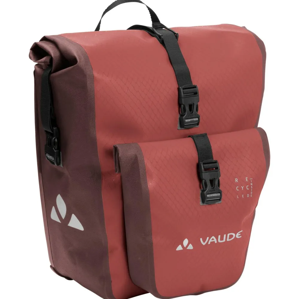 Zusätzlichen Stauraum und gute Übersichtlichkeit bieten die Aqua Back Plus (Recycled) Gepäckträgertaschen von Vaude. Die beiden wasserdichten Gepäckträgertaschen verfügen jeweils über ein großes Hauptfach, sowie eine praktische Innentasche. Außerdem steht an jeder Tasche eine kleine Extratasche mit separatem Rollverschluss zur Verfügung. Darin lassen sich alle wichtigen Accessoires verstauen, die auch auf Tour schnell zur Hand sein sollen.
