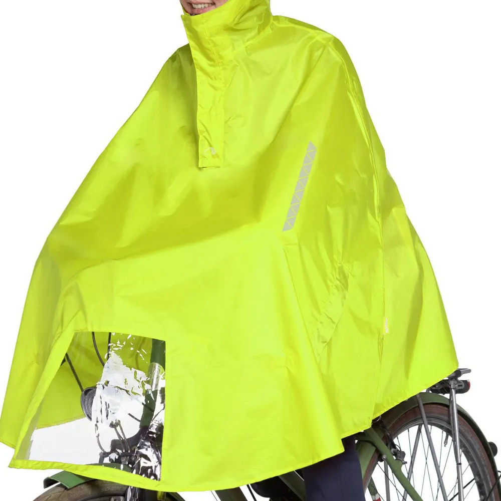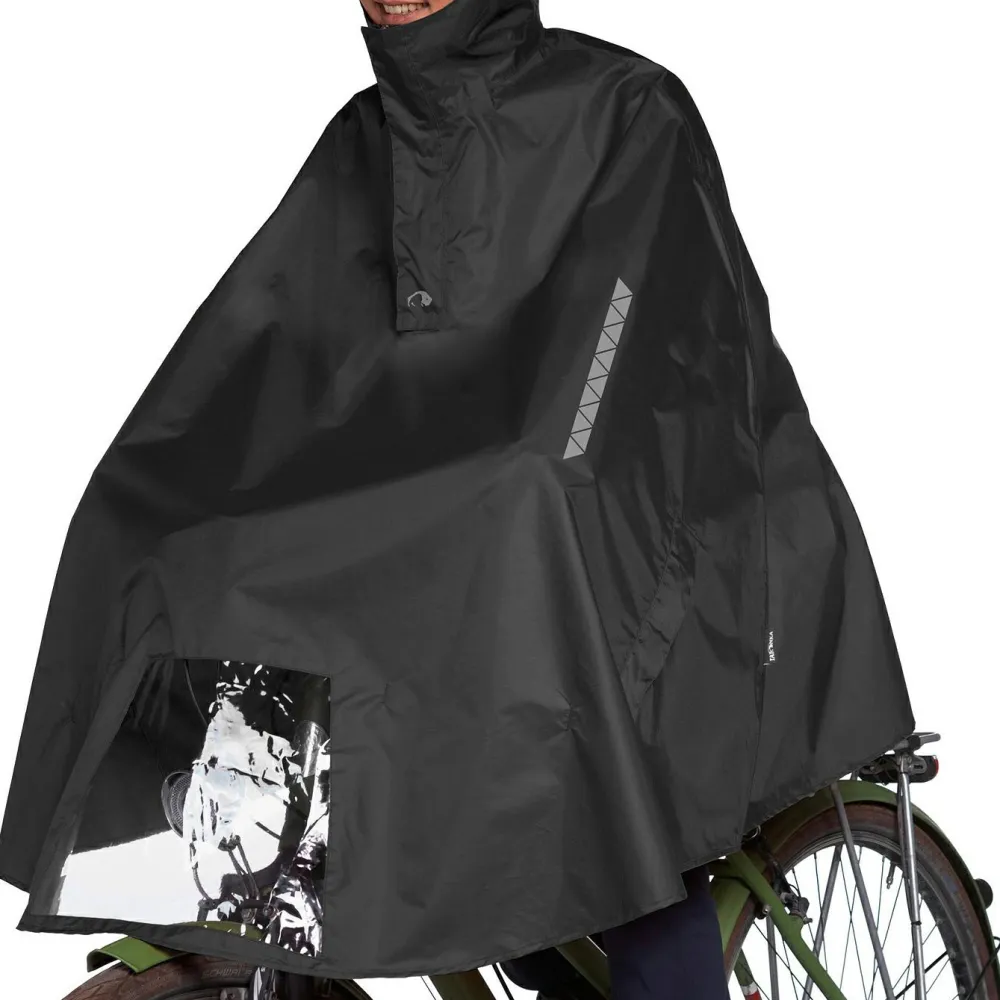 Der Tatonka Bike Poncho begleitet Dich zuverlässig auf dem Weg zur Arbeit, wenn das Wetter mal wieder Kapriolen schlägt. Das wasserdichte und winddichte Hardshell-Material hält Dich trocken, während die atmungsaktive Beschichtung für ein angenehmes Klima unter dem Poncho sorgt. Dank der verstellbaren Kapuze bleibt auch Dein Kopf geschützt. Die reflektierenden Details und das Klarsichtfenster vorne sorgen dafür, dass Du im Straßenverkehr gut sichtbar bist – besonders, wenn es draußen dunkel oder neblig ist.