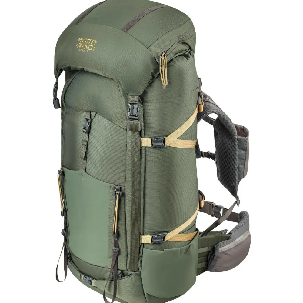 Für Trekkingtouren und Rucksackreisen ist der Trekkingrucksack Bridger 55 von Mystery Ranch der optimale Partner! Er kommt mit einem geräumigen Hauptfach daher. Das Deckelfach bietet Platz für Kleinigkeiten und lässt sich abnehmen. Das kannst Du als Hüfttasche verwenden! Stretchfächer an den Seiten sind praktisch für Trinkflaschen. An den Materialschlaufen lässt sich Equipment sicher fixieren.